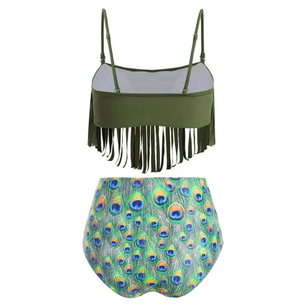 Женский купальный костюм из двух частей, топ с оборками и высокой талией, комплект бикини, танкини, купальник