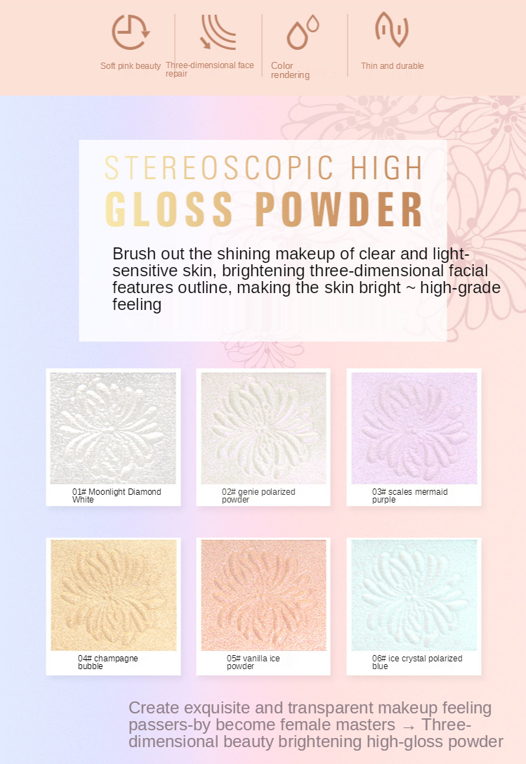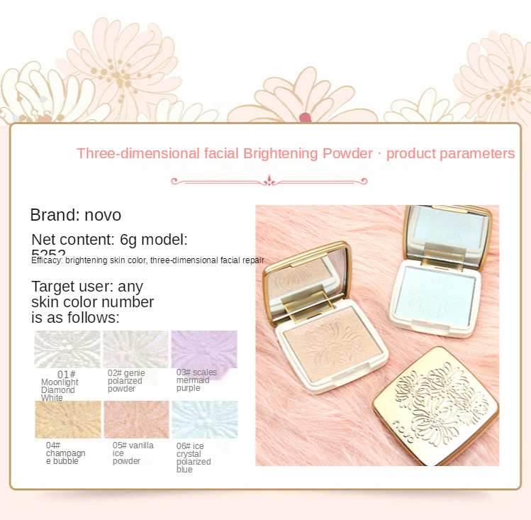 Novo стереоскопическая блестящая пудра для девичьего макияжа лица шесть цветов лицо более красивое
