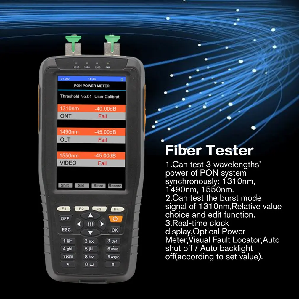 1. Может протестировать 3 длины волны PON системы синхронно: 1310 нм, 1490 нм, 1550 нм.