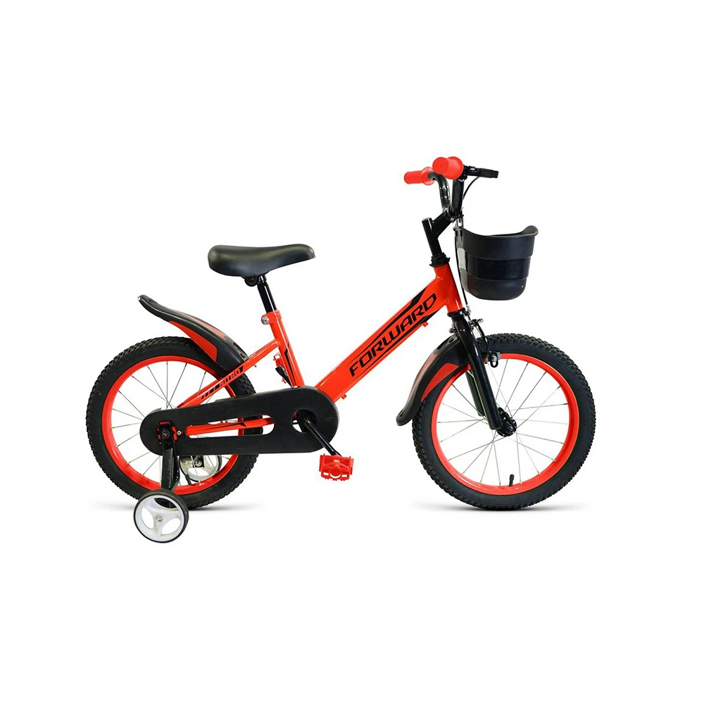 Велосипед, предназначенный для детей в возрасте от трех до шести лет, без переключения передач. Технические особенности: стальная рама Hi-Ten, жесткая стальная вилка, одинарные обода FWD Single Wall, ножные педальные тормоза, полная защита цепи, съемные боковые колеса, пластиковые крылья, передняя корзинка, звонок. Подходит для обучения и легких прогулок. Диаметр колес - 16 дюймов. Вес - 11 кг. Рама Сталь Hi-Ten Вилка Жесткая стальная Тормоза Ободные (V-Brake) + ножной тормоз Передняя втулка FWD, стальные Задняя втулка FWD, стальные Система FWD, 32T, стальная Каретка Golden Swallow, стальная Кассета 16T Цепь KMC C410 Педали Пластик, стальная ось Рулевая колонка Резьбовая с ограничителем угла поворота Вынос FWD, резьбовой стальной Руль FWD, стальной, 25.4x460 мм Подседельный штырь FWD, стальной, 25.4х200 мм Седло FWD Comfort Kid Обода FWD Single Wall, стальные одностеночные Спицы Стальные Покрышки Forward, 16x2.125” (30TPI) Дополнительное оборудование Поддерживающие колеса, Багажник стальной с зажимом, Крылья пластиковые, ЗвонокВНЕШНИЙ ВИД ТОВАРА
