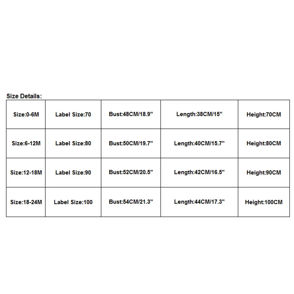 Информация о размере: Размер: 0-6 м ЭтикеткаРазмер: 70 Бюст: 48См/18,9" Длина: 38См/15" Высота: 70 см Размер: 6-12 м ЭтикеткаРазмер: 80 Бюст: 50См/19,7" Длина: 40См/15,7" Высота: 80 см Размер: 12-18 м ЭтикеткаРазмер: 90 Бюст:52См/20,5" Длина:42См/16,5" Высота: 90 см Размер: 18-24 м ЭтикеткаРазмер: 100 Бюст:54См/21,3" Длина:44См/17,3" Высота: 100 см