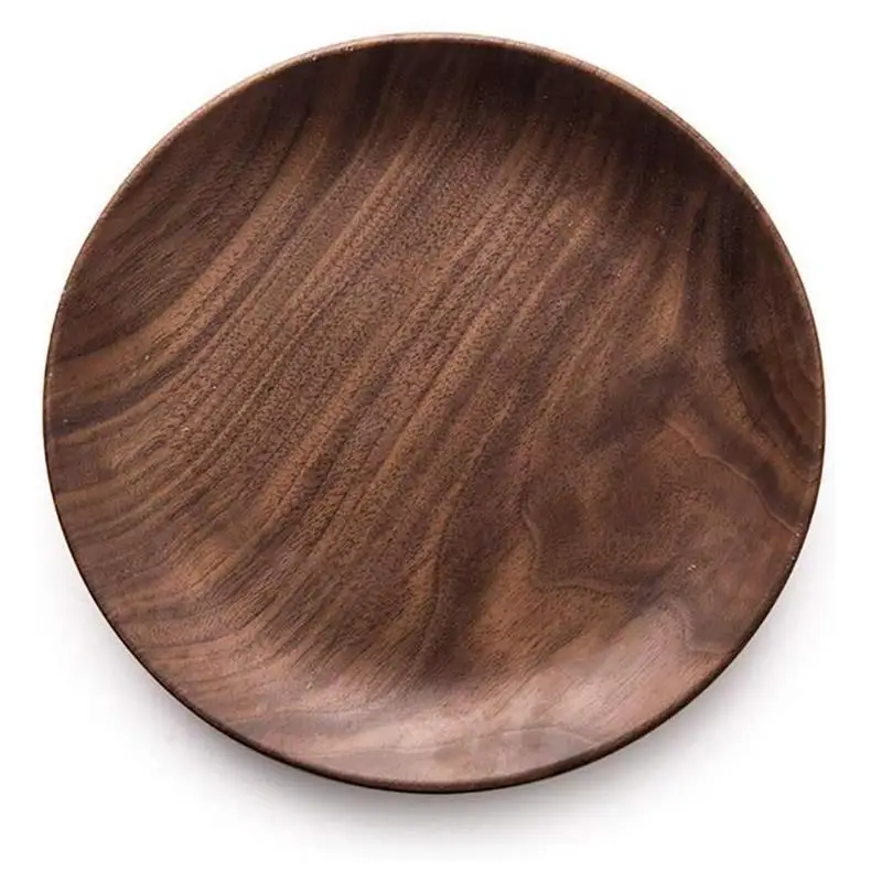Натуральные круглые деревянные тарелки черный орех деревянный поднос