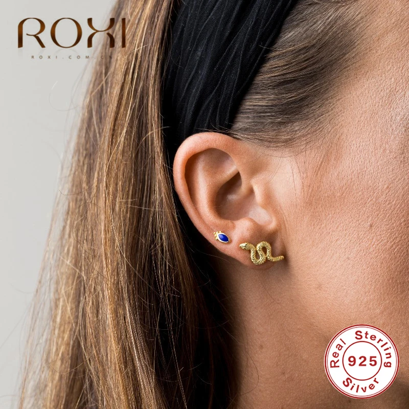 ROXI Модные простые серьги в виде змеи, 100% Стерлинговое Серебро 925 пробы, серпантин, серьги-гвоздики для женщин, ювелирное изделие, ювелирное изделие