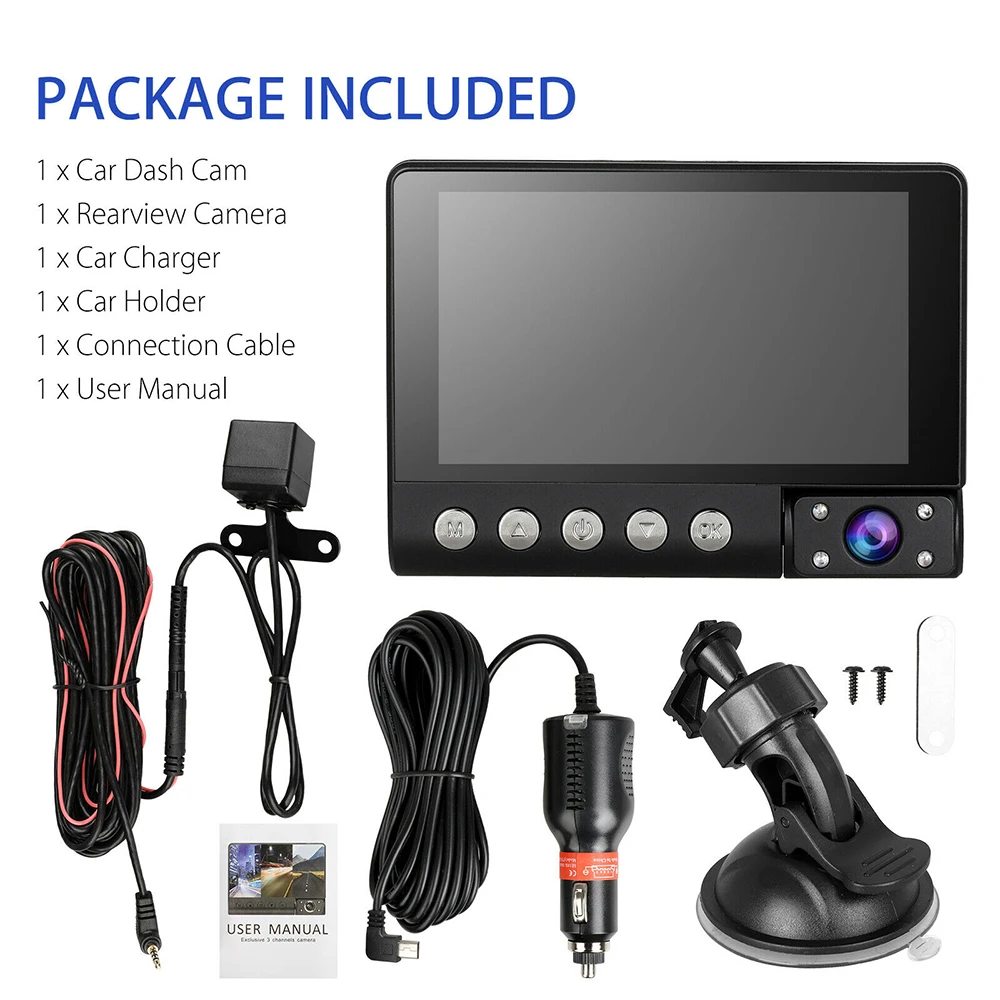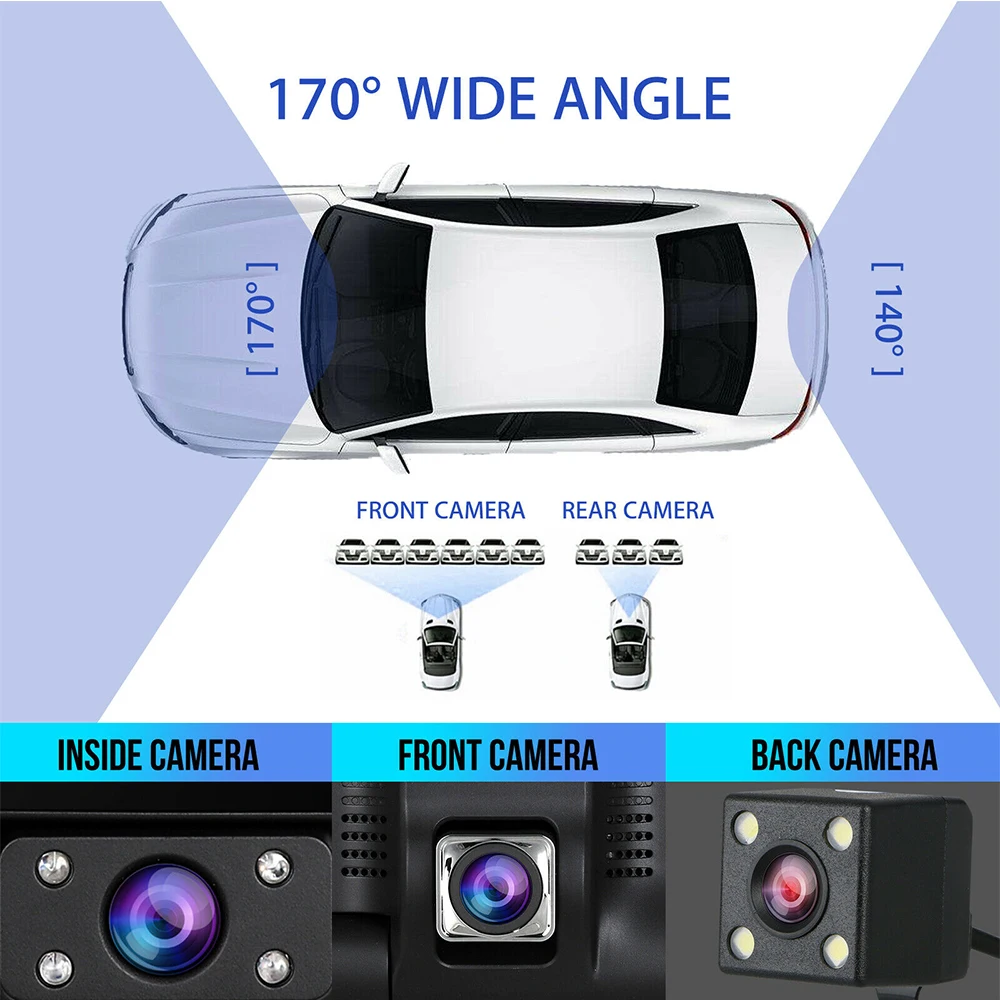 Автомобильный видеорегистратор 4 ''с 3 объективами HD 1080P, Автомобильный цифровой видеорегистратор, Автомобильный видеорегистратор, камера заднего вида, 170 °, ночное видение, g-сенсор, Автомобильный видеорегистратор S C9