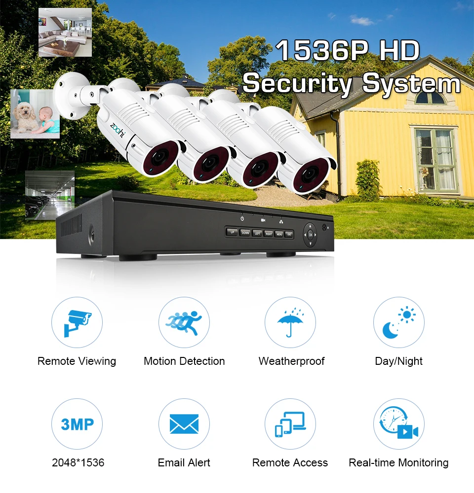 Эта система сочетает в себе мощный 3MP 8-канальный сетевой видеорегистратор (NVR) с 2/4/6/8 пуля 3MP ip-камер. Безопасности камеры тоже полностью к атмосферным воздействиям и может быть установлен в помещении или на открытом воздухе.