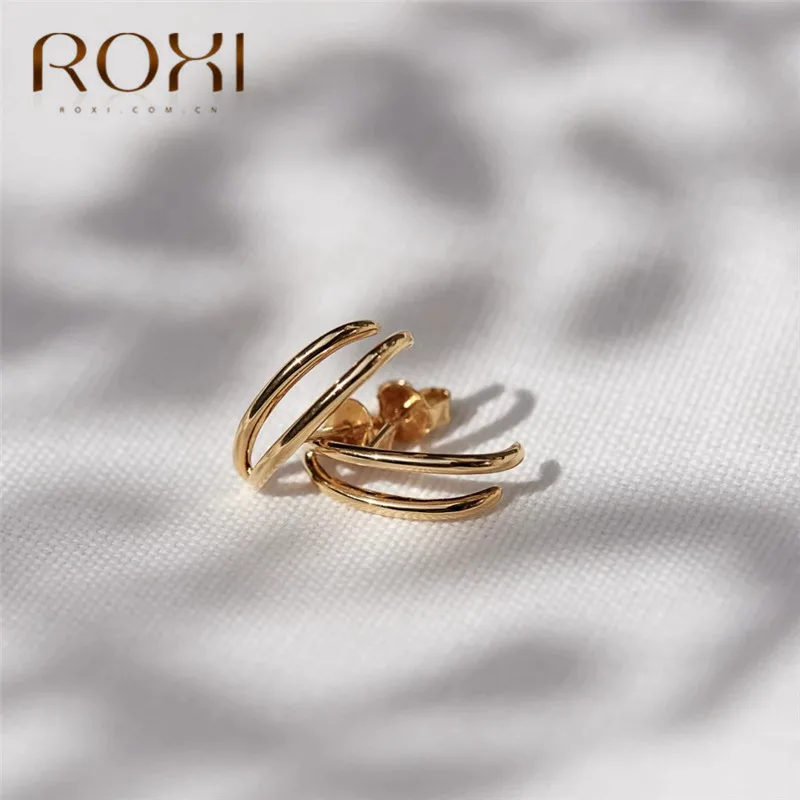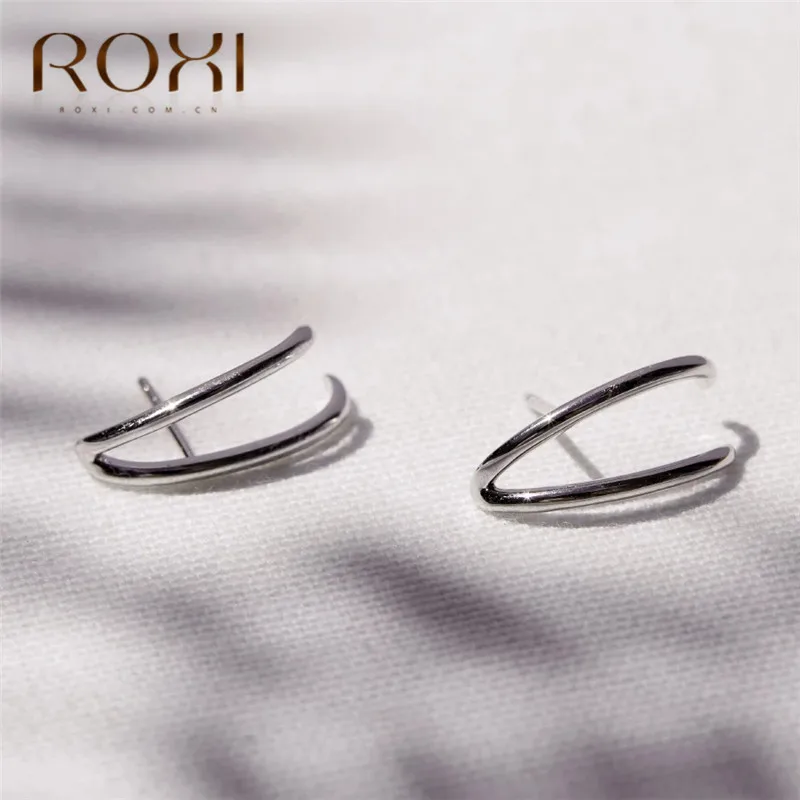 Женские серьги-гвоздики геометрической формы ROXI, серьги из стерлингового серебра 2020 пробы в Корейском стиле, 925