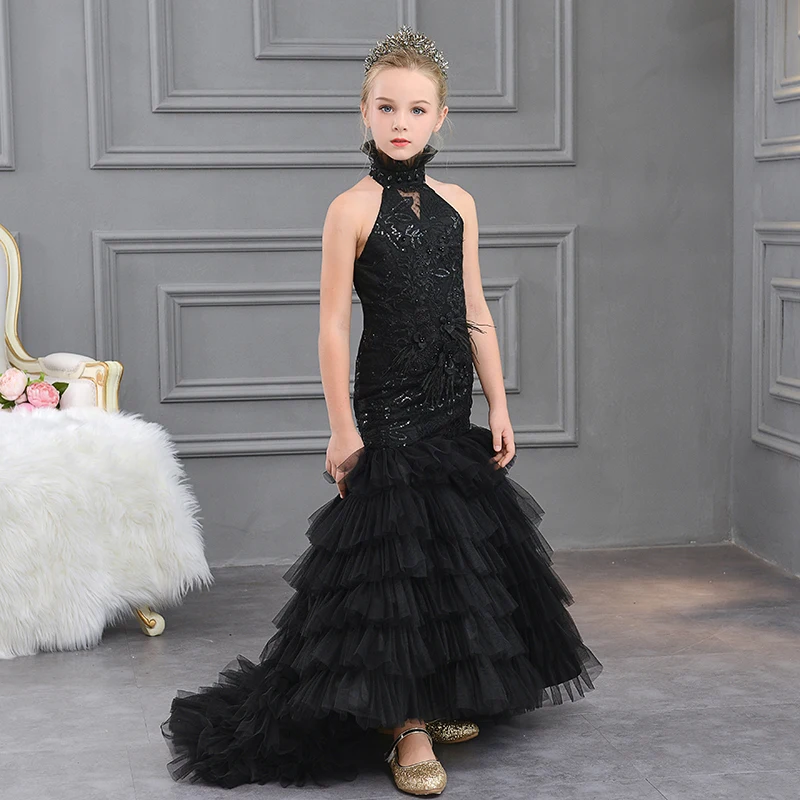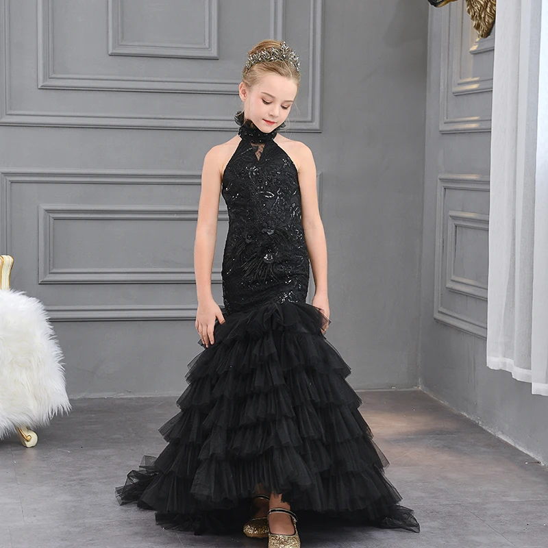 Платье для маленьких девочек; Вечернее Бальное Платье с вышивкой со шлейфом; детское платье принцессы на свадьбу; платье русалки; платье с блестками для девочек-подростков; Vestidos