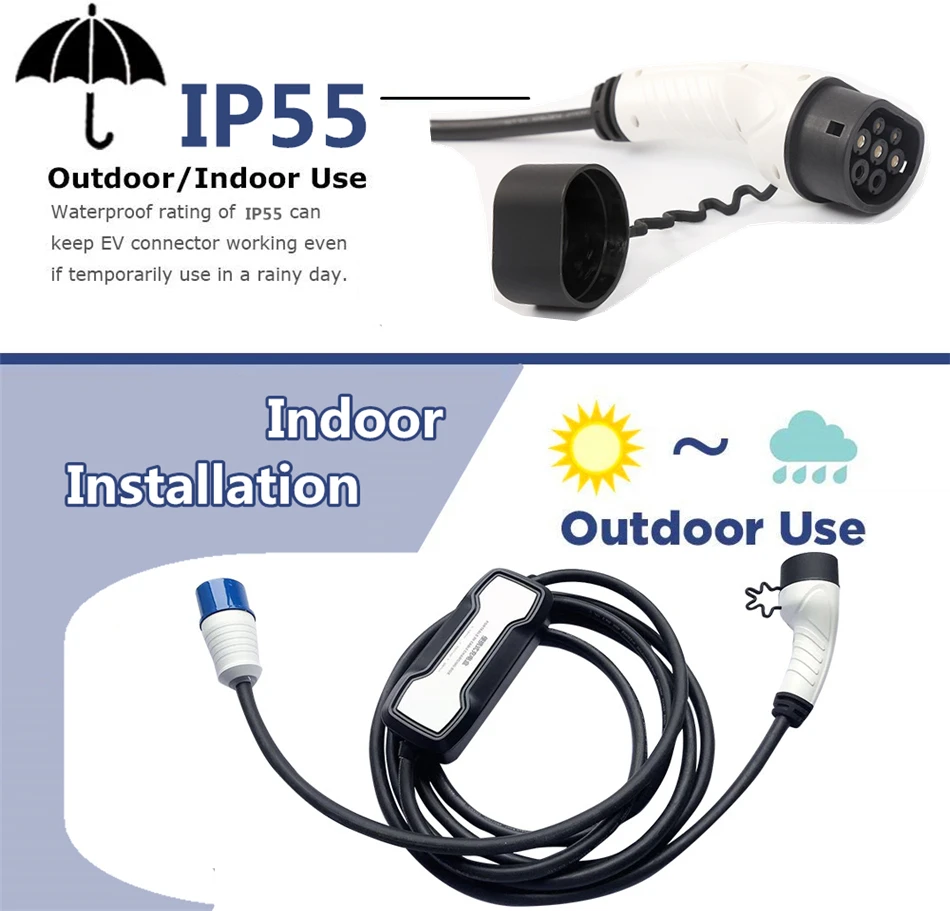 32A EV Зарядное устройство Тип 2 для электрического автомобиля IEC62196 Schuko 16A электрический кабель для зарядки автомобиля Уровень 2 Портативный Зарядное устройство 220V-250V