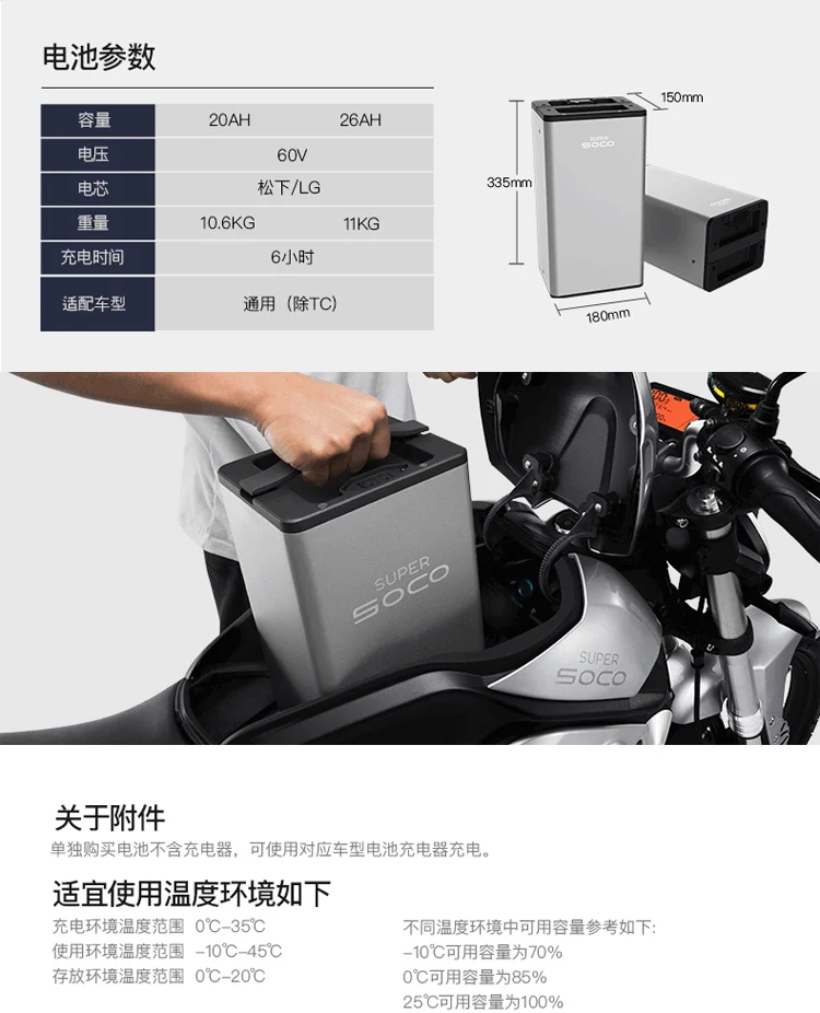 -Оригинальная литиевая батарея super soco -Подходит для TSLITE TSPRO TS800R TS1200R T2 TC -Запасная литиевая батарея для большой емкости аккумулятора -Одна шт цена -Вес: около 11 кг -18650 Литий Panasonic импортируется из Японии. -Безопасный Алюминиевый Чехол для аккумулятора -Бесплатная доставка до двери методом продажи. -Цена включает все.