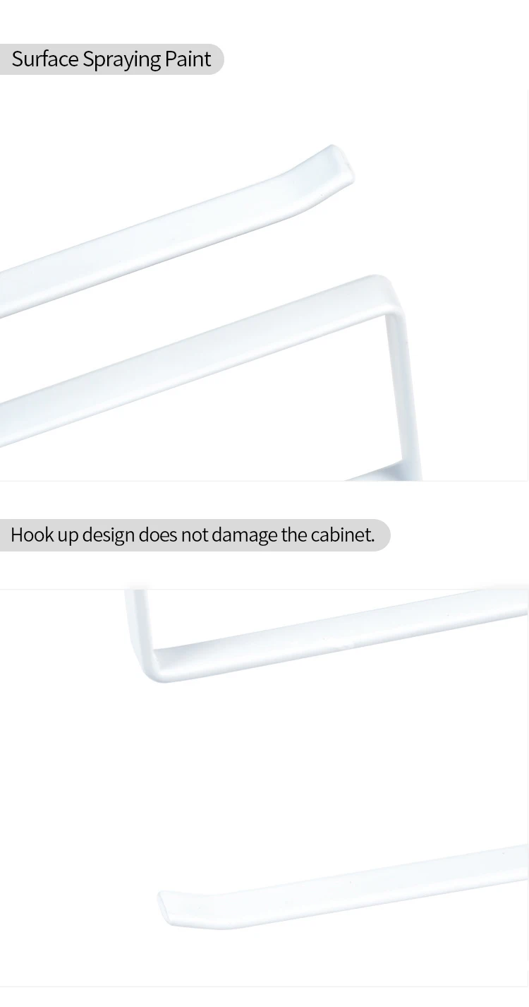 1. Нет необходимости сверлить или пригвоздить стену и сэкономить место. 2. Краска для распыления поверхности, предотвращает ржавчину 3. Конструкция крючка не повреждает шкаф. 4. Легко разобрать и можно свободно перемещать. 5. Висят на перегородках шкафа, хранят бумагу, тряпки, полиэтиленовую пленку и другие кухонные инструменты. 6. Его также можно повесить на дверцу шкафа вертикально.
