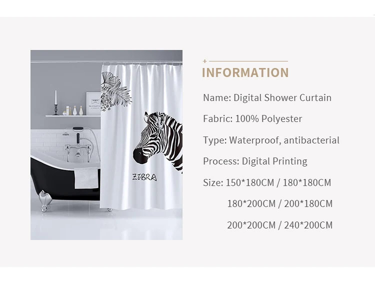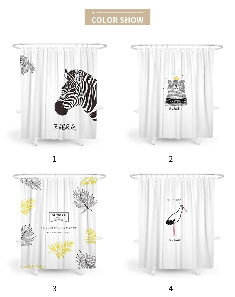 Зебра медведь мультяшная душевая занавеска для ванной полиэстер Ткань Водонепроницаемая Современная занавеска для душа противотуманная занавеска для ванной с крючками