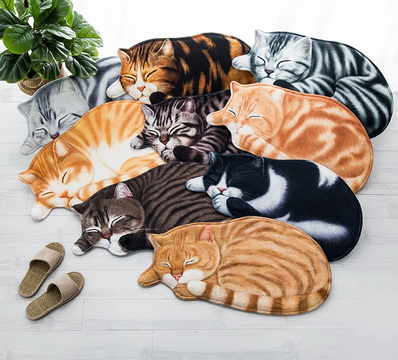 New Big 3D Printed Sleeping Cat Doormats Hallway Doorway Carpet Living Bedroom Anti-slip Floor Mats Kitchen Balcony Rugs Tapete
