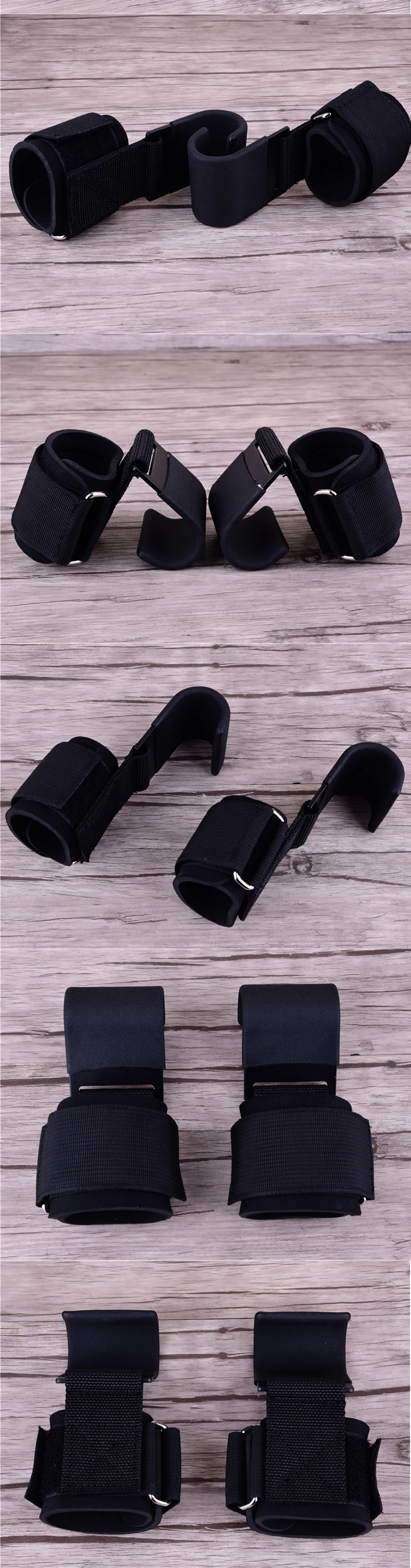 Description: Material: cast iron 1.Durable nylon covered weightlifting hooks help take the stress from your hands and wrists. 2.Hooks stay snug on your wrist with D-ring & wrist wrap. 3.Pre-curved hooks easily fit over dumbbells or bars. 4.Neoprene lined wrist-wrap stays comfortable & snug without binding. Color:Black Package included: 1 pair weight lifting hook Note: Light shooting and different displays may cause the color of the item in the picture a little different from the real thing. The measurement allowed error is +/- 1-3cm.
