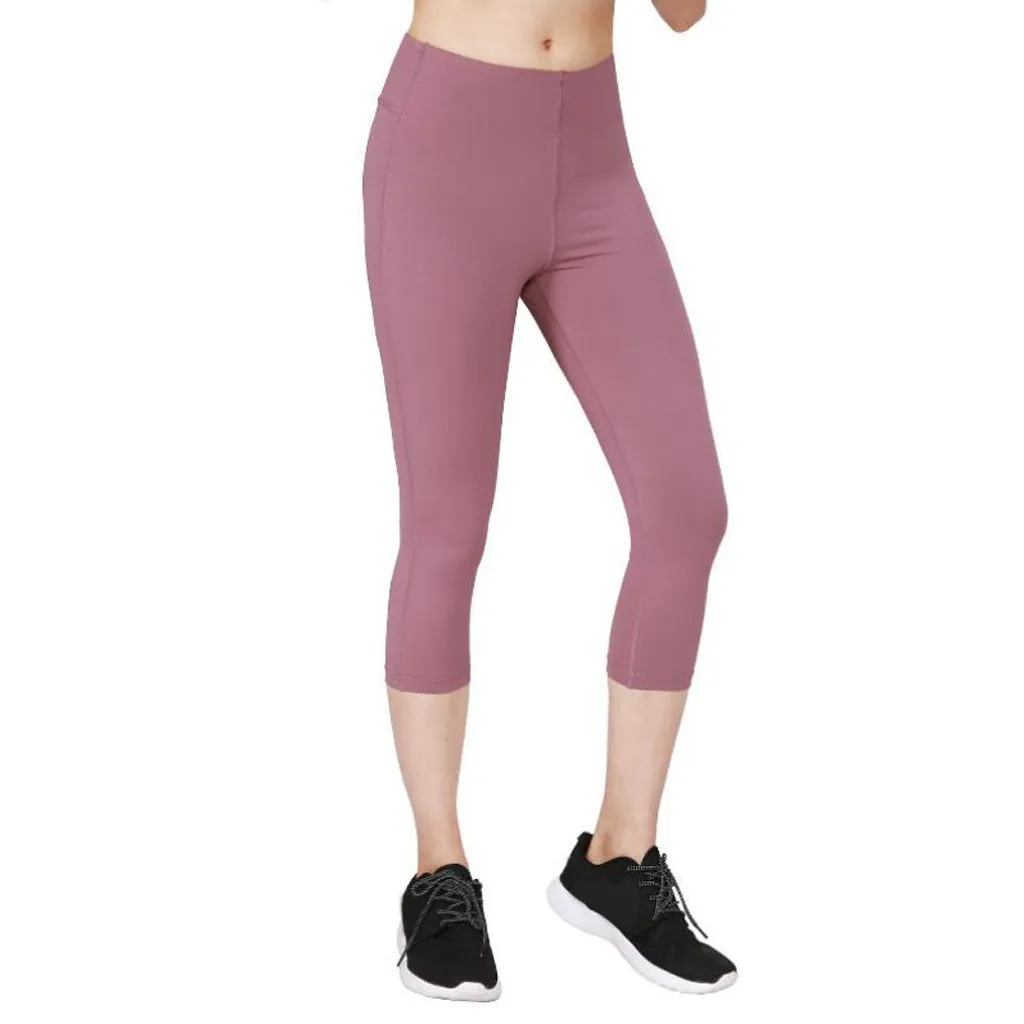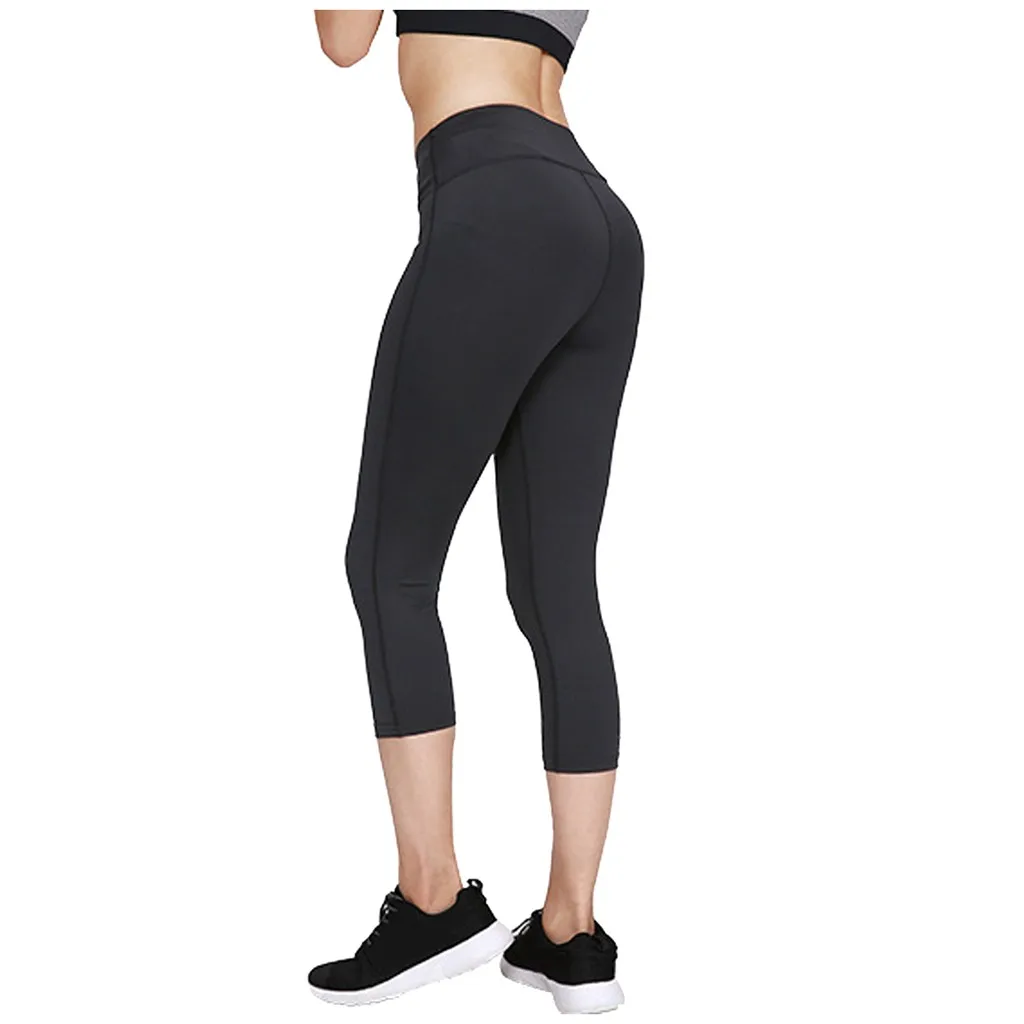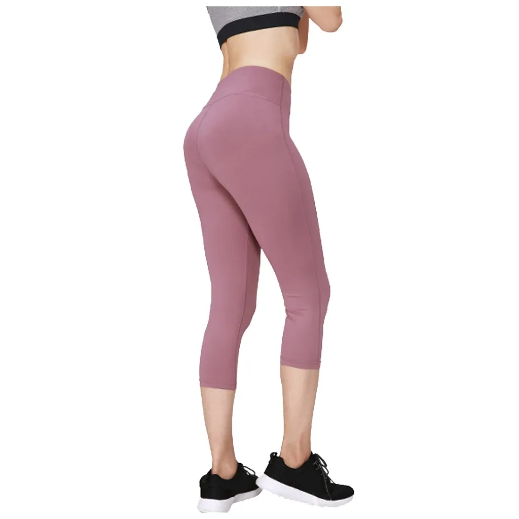 Женские обтягивающие спортивные эластичные одноцветные укороченные брюки с высокой талией для фитнеса и йоги