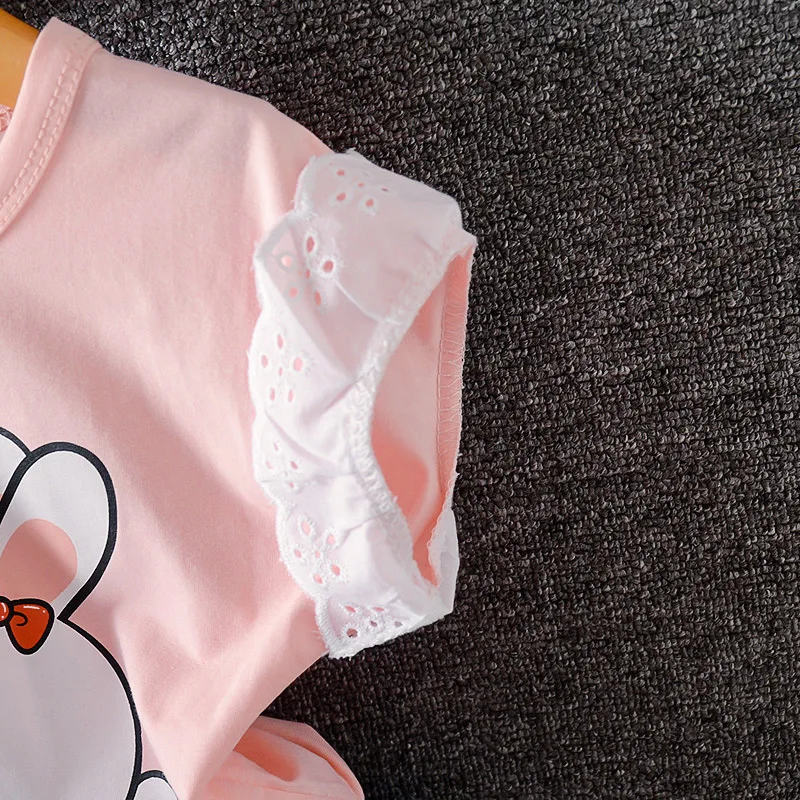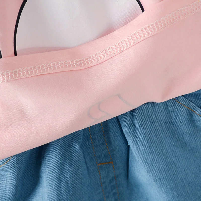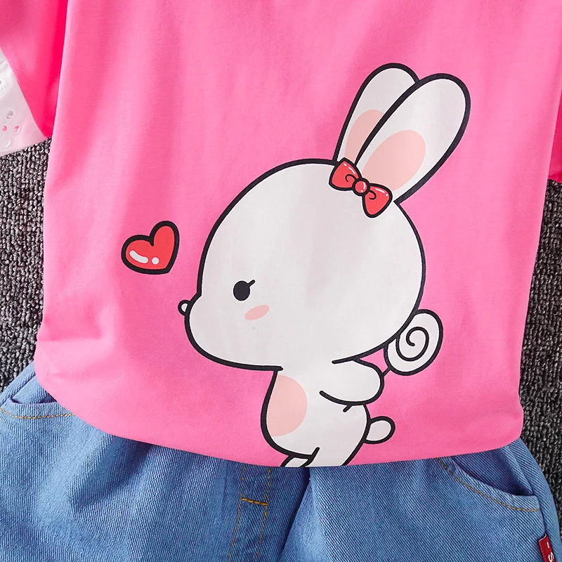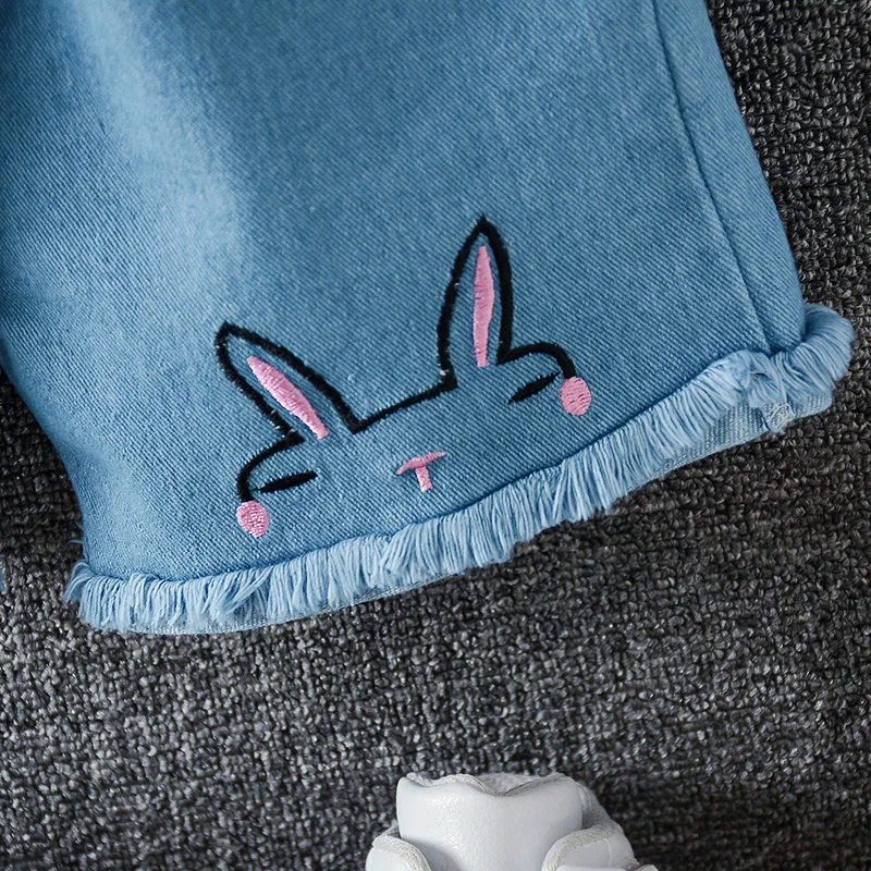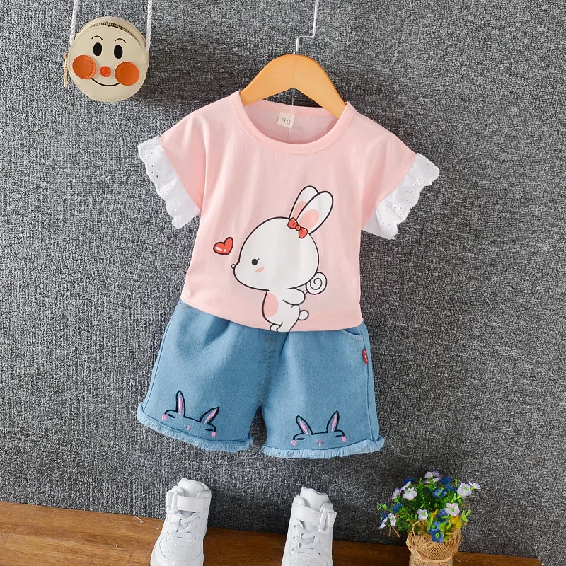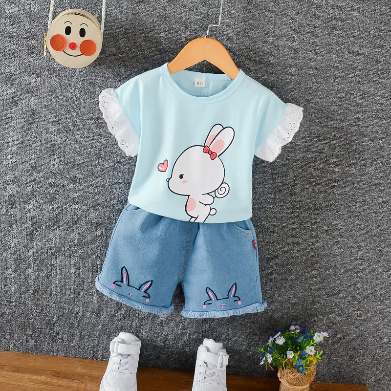 Летние комплекты одежды для маленьких девочек хлопковая Повседневная Базовая футболка Короткие Джинсы Комплекты из 2 предметов детская одежда спортивный костюм для малышей A0081