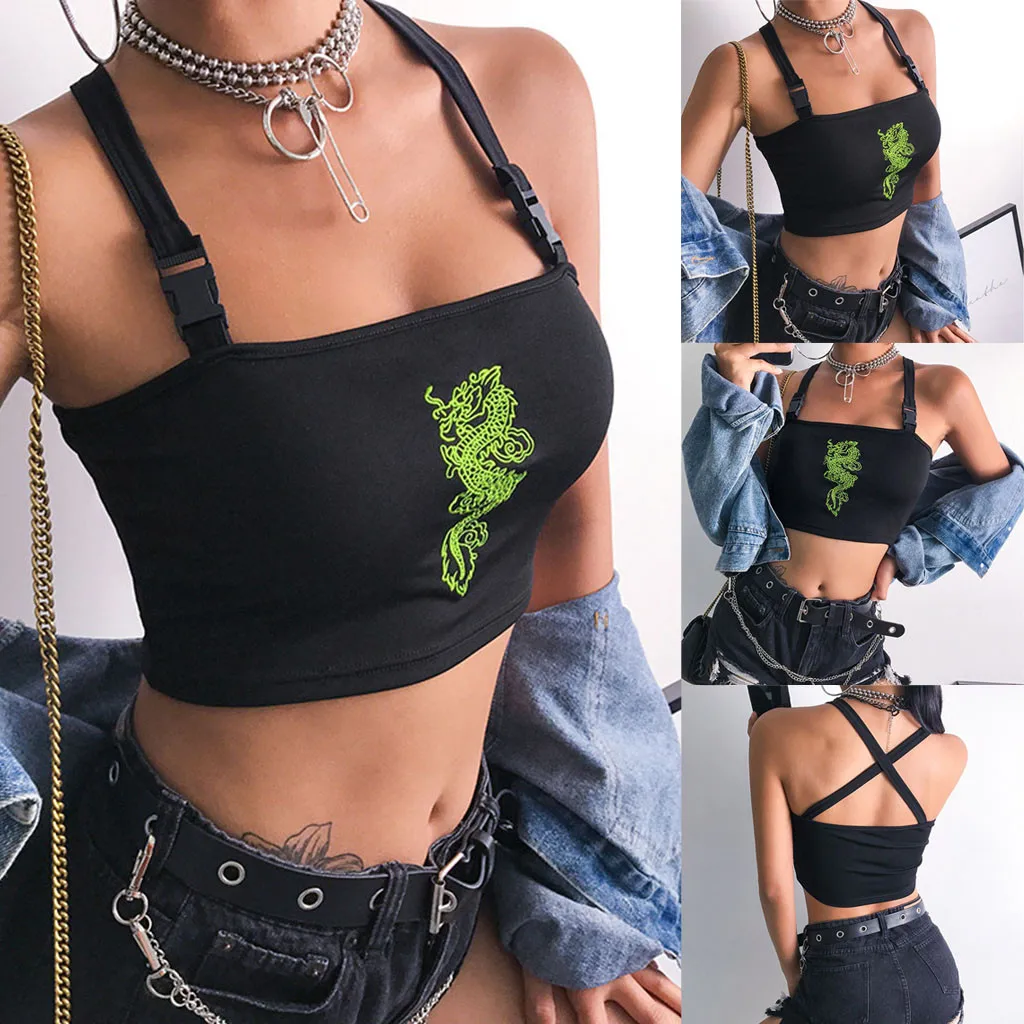 Женский топ на бретелях, сексуальный светоотражающий Топ без рукавов с пряжкой