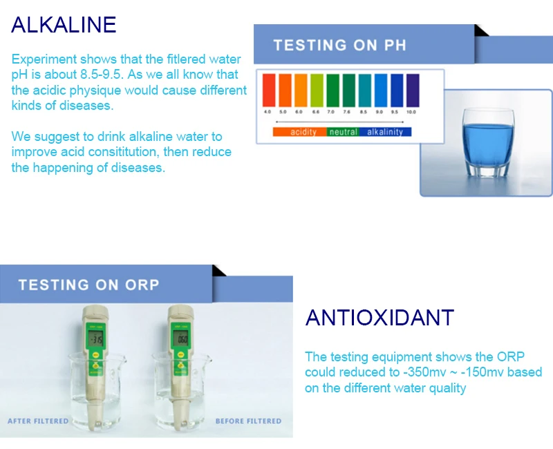 1. Создает шелковистую, гладкую и великолепную воду для дегустации, которая идеально подходит для прямого питья и приготовления пищи 2. Помогает фильтровать хлор и другие загрязнители и надолго поглощает металлы, такие как свинец и медь 3. Повышает уровень кислотности воды до уровня pH 8 или выше 4. Естественным образом залейте в воду богатые минералы (Ca, Mg, Na, K и более) 5. Уменьшает масштаб извести 6. Поддерживает системный рН-баланс в теле 7. Повышает активность водорода 8. Обеспечивает низкий уровень негативов: от-100 мВ до-300 мВ, что уменьшает окисление вашего тела и делает вас моложе 9. Уменьшает размер молекулы воды, что создает очень впитываемую воду 10. Повышает Щелочность, чтобы сделать вашу питьевую воду более первой