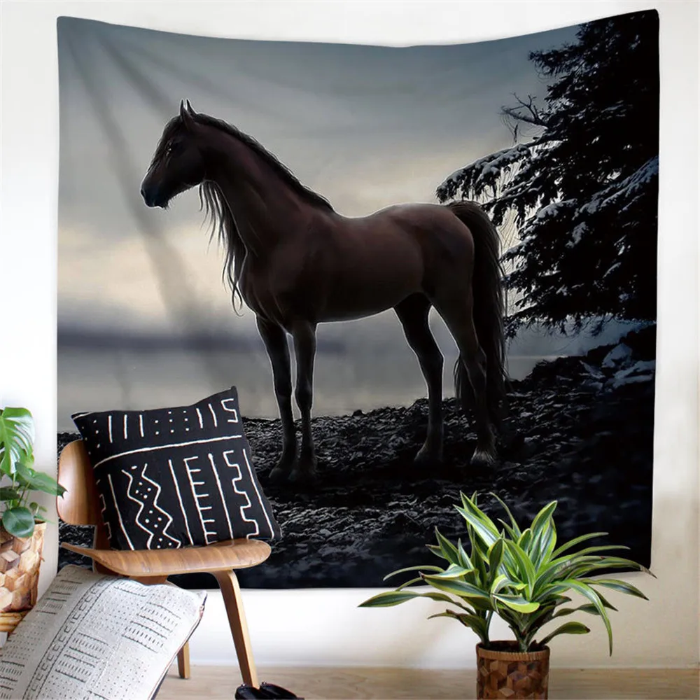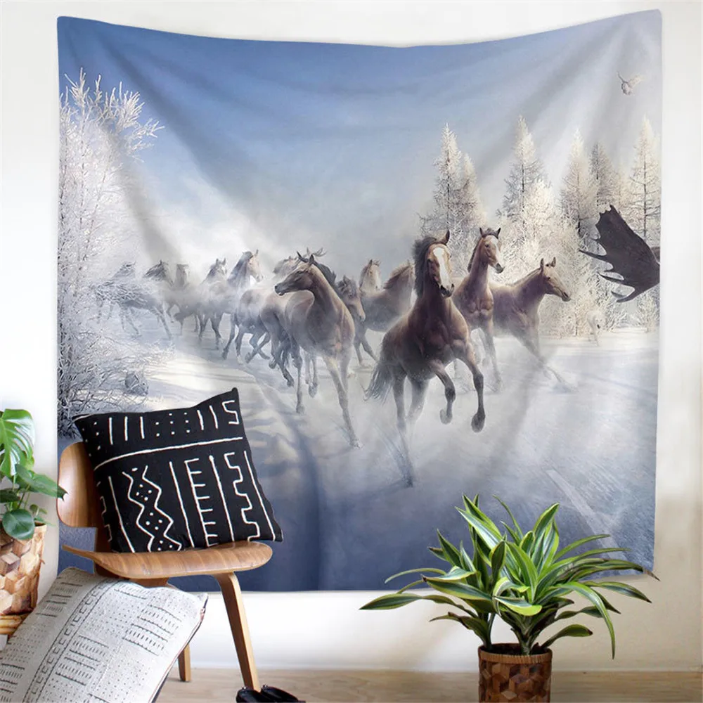 Настенный гобелен с принтом лошади, полиэстер, ткань, домашний декор, Настенный Ковер, ковры, Большой Диван, одеяло