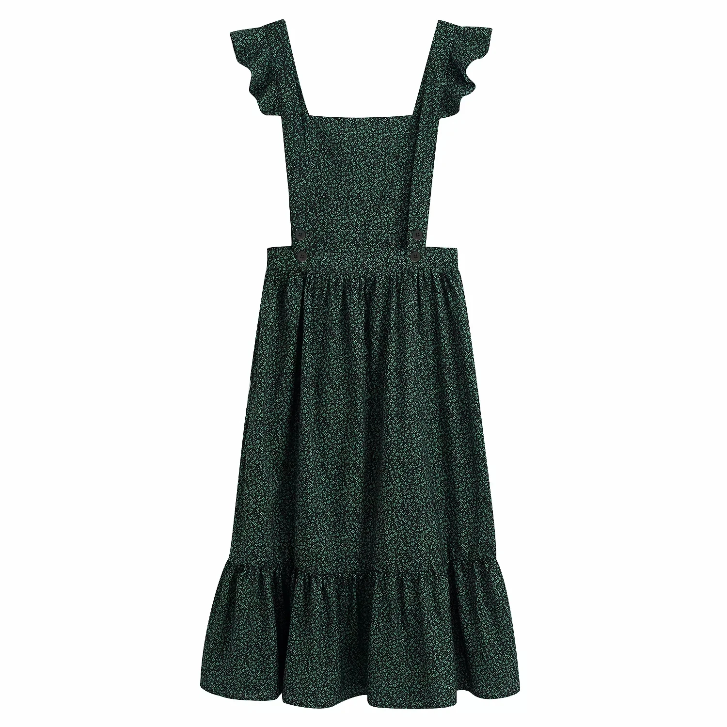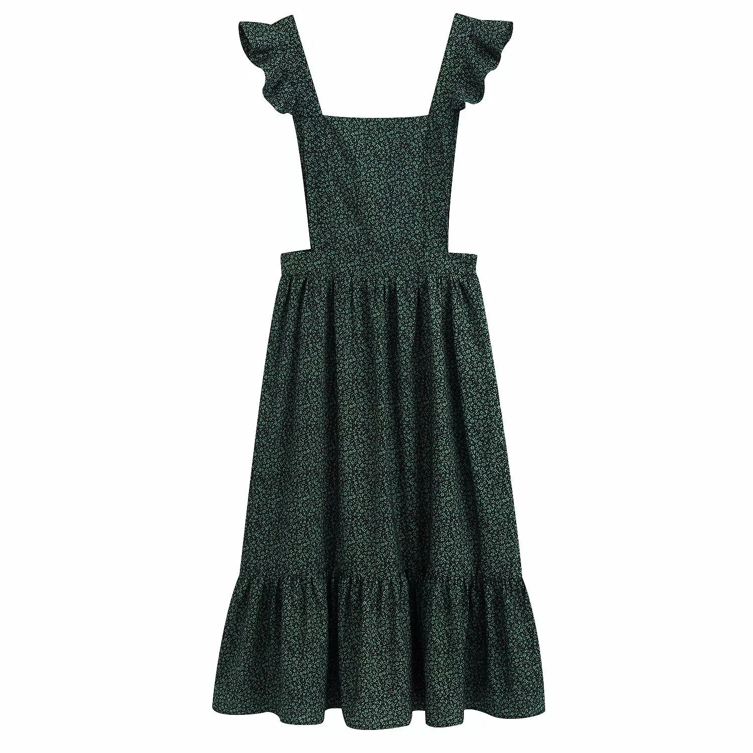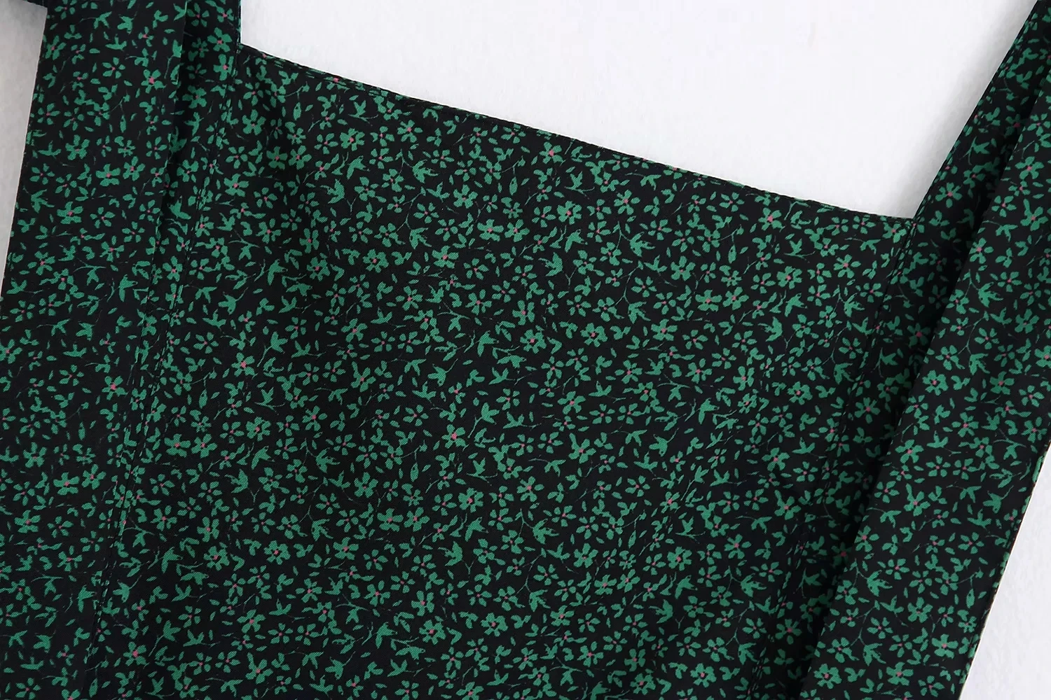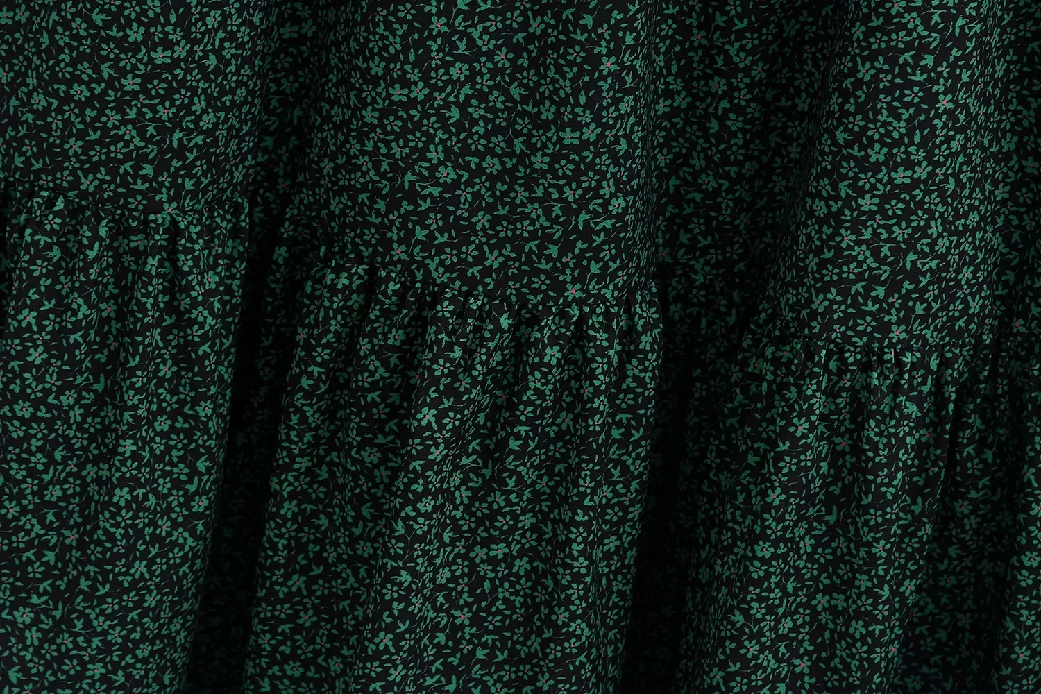 Милое женское винтажное зеленое платье с высокой талией, летнее кавайное ретро платье с оборками и цветочным рисунком, стильное платье миди в стиле бохо, Vestidos