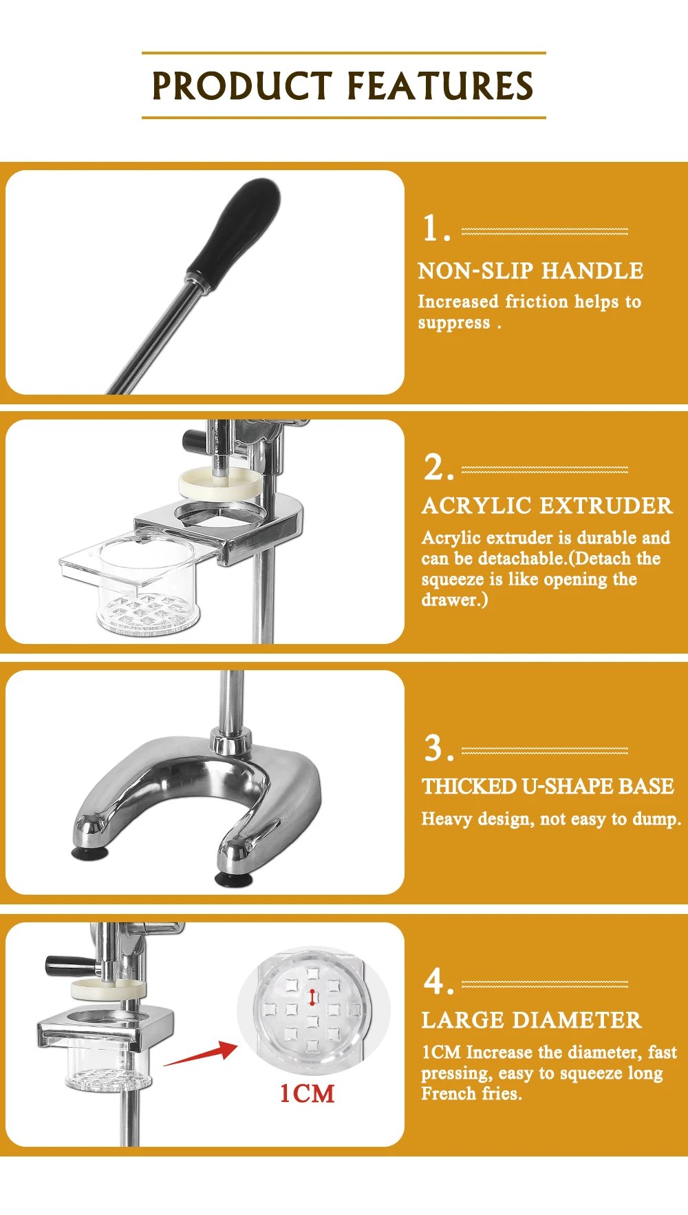 4. Большой диаметр 1 см увеличивает диаметр, быстрое нажатие, легко выдавливать длинный картофель фри.