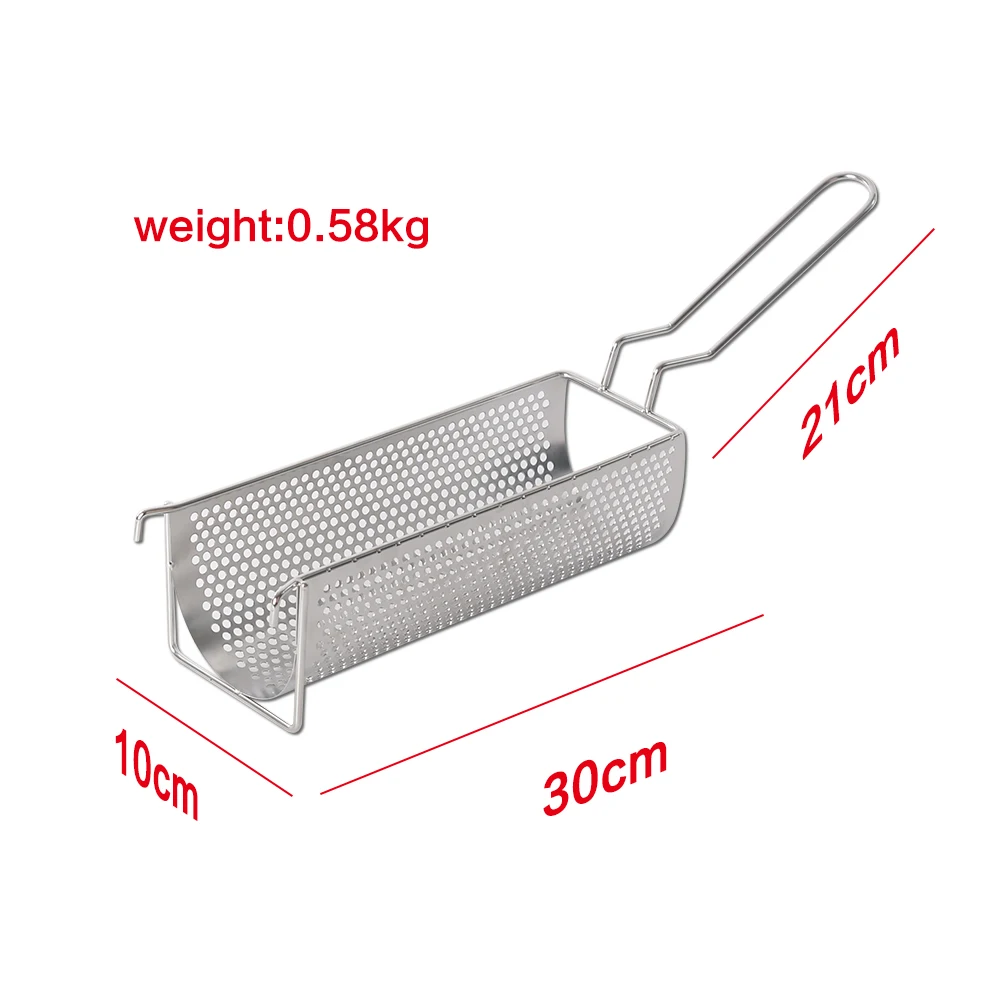 Корзина: Подходит для картофельных чипсов длиной 30 см Материал: нержавеющая сталь Размер продукта: 30*10 см, ручка: 21 см Особенности:1. Нескользящая ручка помогает подавить трение.