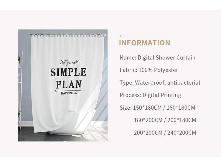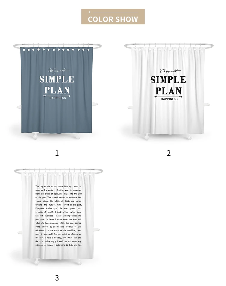 Простой план письмо занавеска для душа ванная полиэстер Ткань Водонепроницаемая Современная занавеска для душа противотуманная занавеска для ванной душ w/Крючки