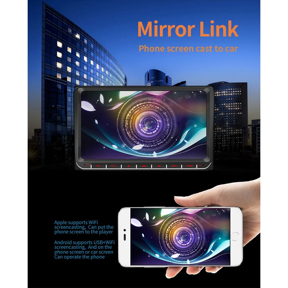 2. Поддержка Android/ iOS, через usb-кабель телефона может синхронизироваться с бортовым экраном