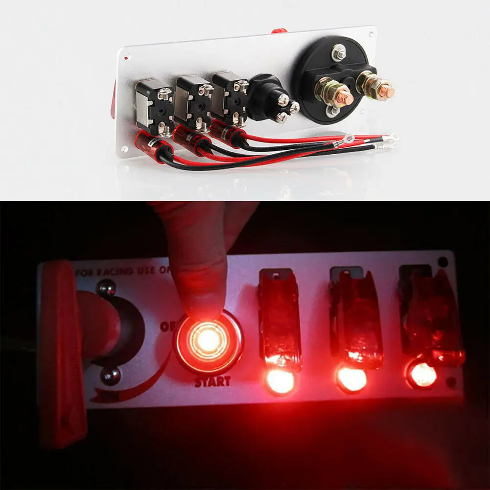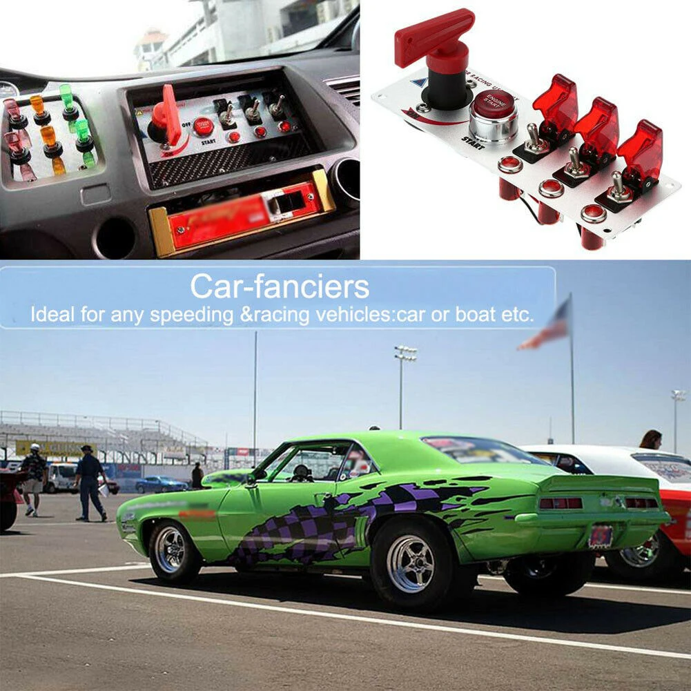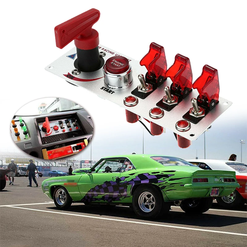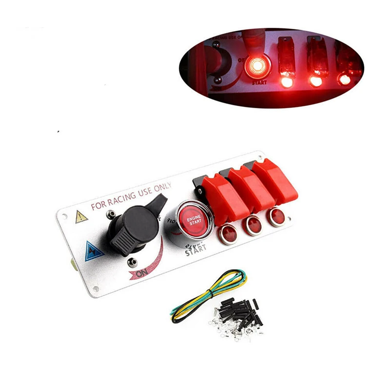 * 12 В постоянного тока откидной Переключатель зажигания ПАНЕЛЬ 5 в 1 кнопка запуска двигателя автомобиля светодиодный DIY