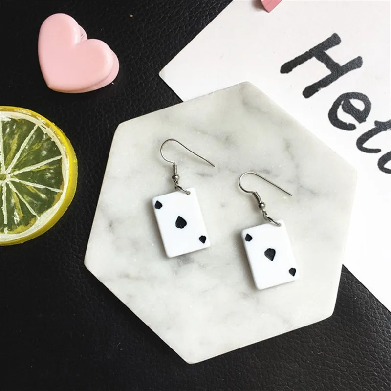 Креативные висячие серьги с игральными картами, 4 стиля, полимерные пластиковые ювелирные изделия, изысканный подарок на день рождения, персонализированные серьги с игральными картами
