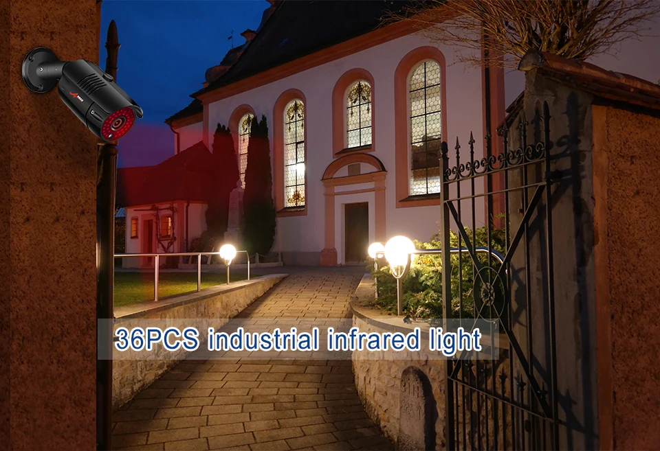 В обычных условиях ночного времени, которые слишком темны для того, чтобы камера отображать полноцветные изображения, ваши камеры будут использовать Инфракрасные светодиоды для записи четких черно-белых видеоматериалов, так что вы никогда не пропустите ничего.