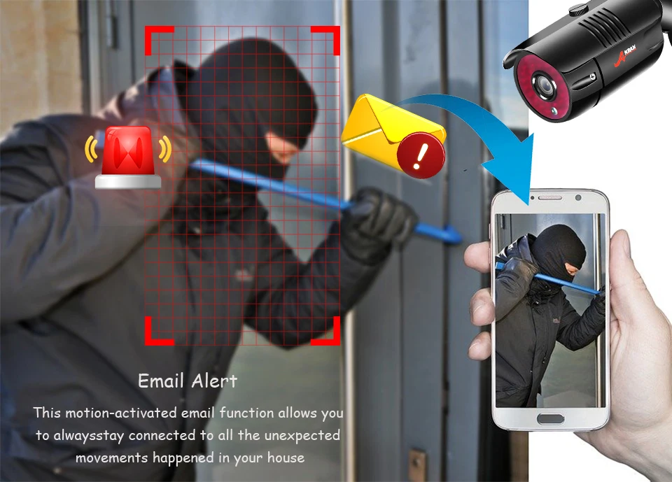 Вы можете включить оповещения об обнаружении движения, когда объект движется, камера отправит ненормальную ситуацию на ваш адрес электронной почты.