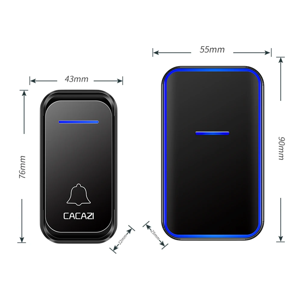1. Кнопка поддерживает до 20 шт., а приемник поддерживает до 100 шт. 2. Передатчик без винтового патрона обеспечивает водонепроницаемость и защиту от пыли. 3. Привлекательная подсветка мигает, когда кто-то толкает дверной звонок. Особенно подходит для пожилых, глухих и беременных женщин. 4. Использует машинное обучение для предотвращения помех от других беспроводных передатчиков. 5. Передатчик использует щелочную батарею 23A12V (не включает батарею). 6. Приемник доступен в различных вилках, штепсельных вилках США/ЕС/Великобритании и адаптерах Австралии, подходит для большинства стран. 7. Расстояние приема: 300 метров на открытой местности 8. На беспроводной сигнал будут влиять препятствия. Чем больше препятствий, тем серьезнее потеря сигнала. 9. Приемник имеет 4 уровня (можно отключить звук) 0-80 дБ, 38 музыки на выбор. 10. Размер: Передатчик: 77x46x20 мм, приемник: 90x56x20мм Примечание: Кнопка не может быть размещена на железной двери, потому что это будет мешать сигналу.