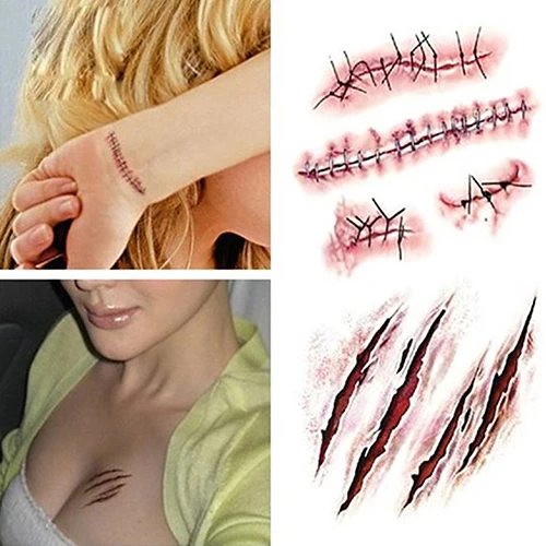 Характеристики: съемный стикер, легко наносится, повседневная жизнь водостойкий, поддельный шрам для травм крови
