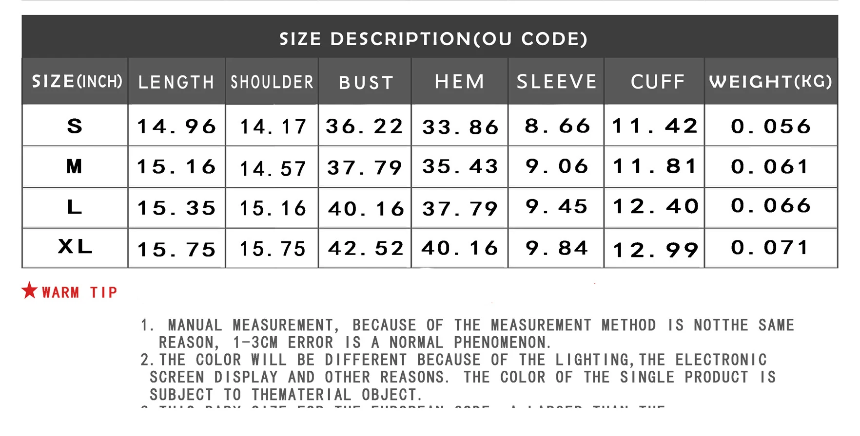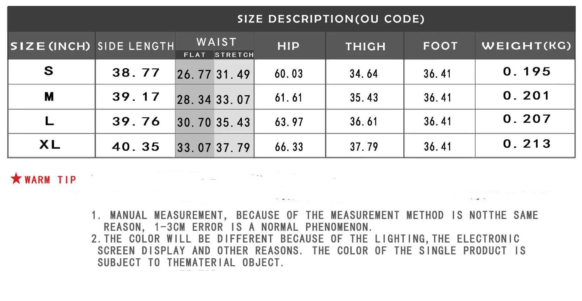 Пожалуйста, проверьте таблицу размеров перед заказом, спасибо.
