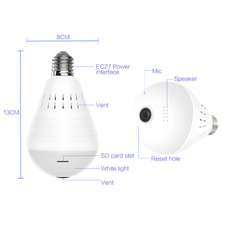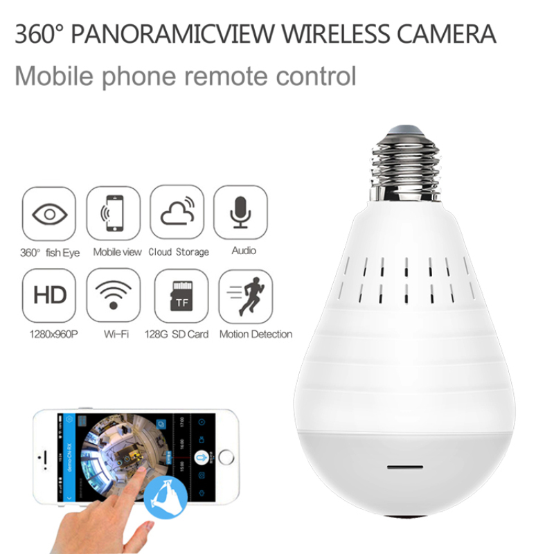 Bulb Light Wireless IP Camera Wi-fi FishEye 960P 360 degree Full View Mini CCTV Camera 1.3MP Home Security WiFi Camera Panoramic