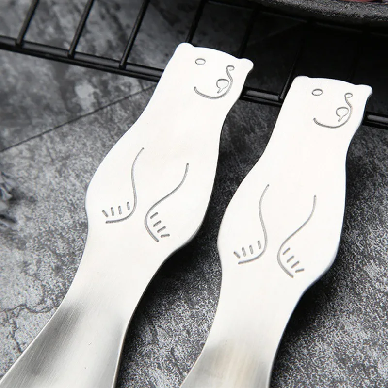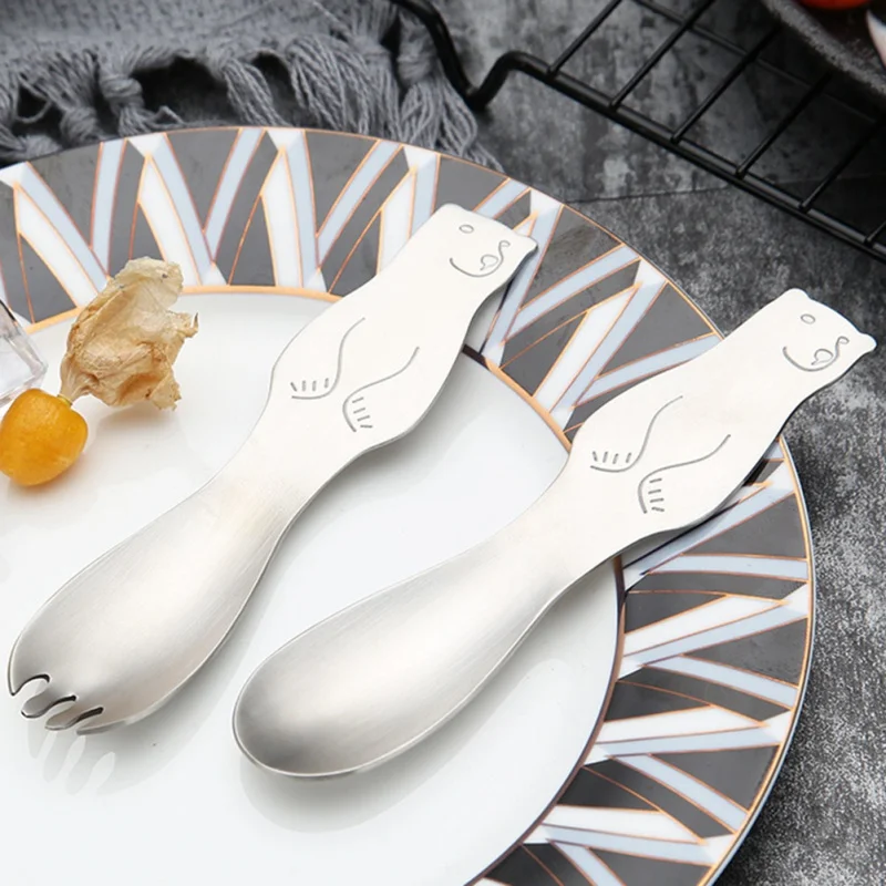 304 маленькая ложка из нержавеющей стали Портативный милый медведь шаблон десерт вилка для детей