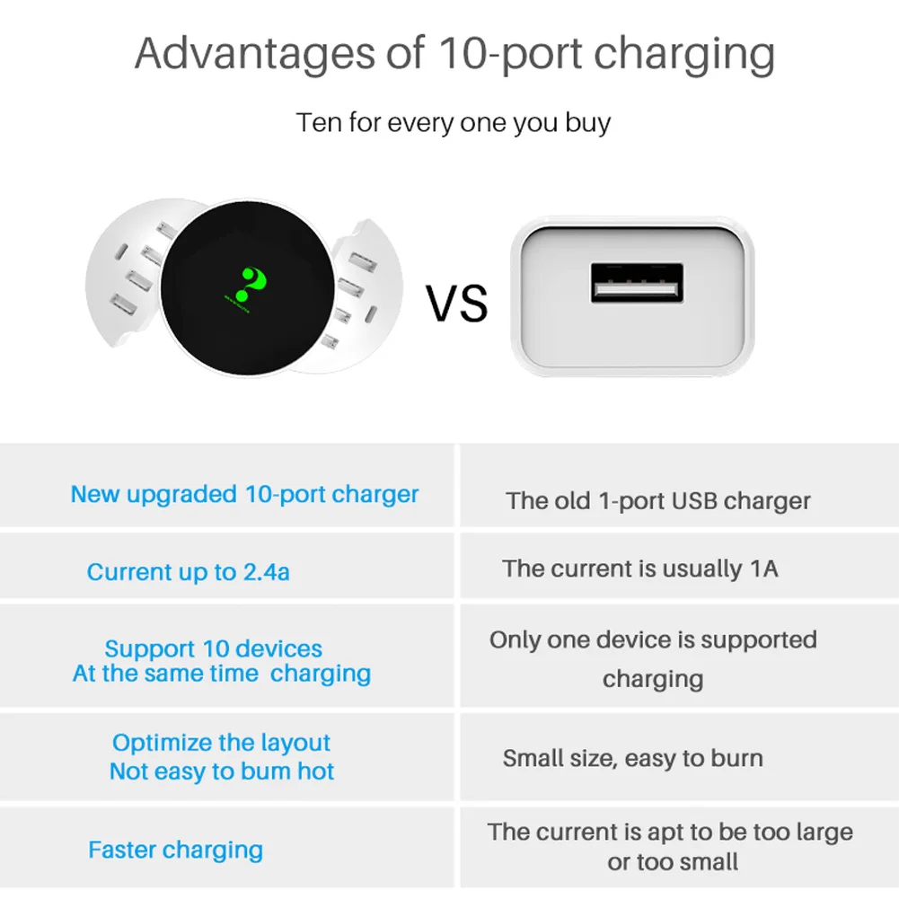 -Портативный складной дизайн. Одновременно заряжайте до 10 устройств.