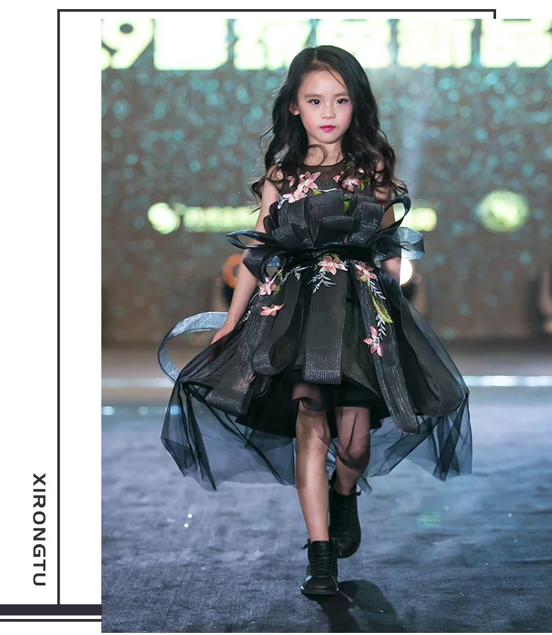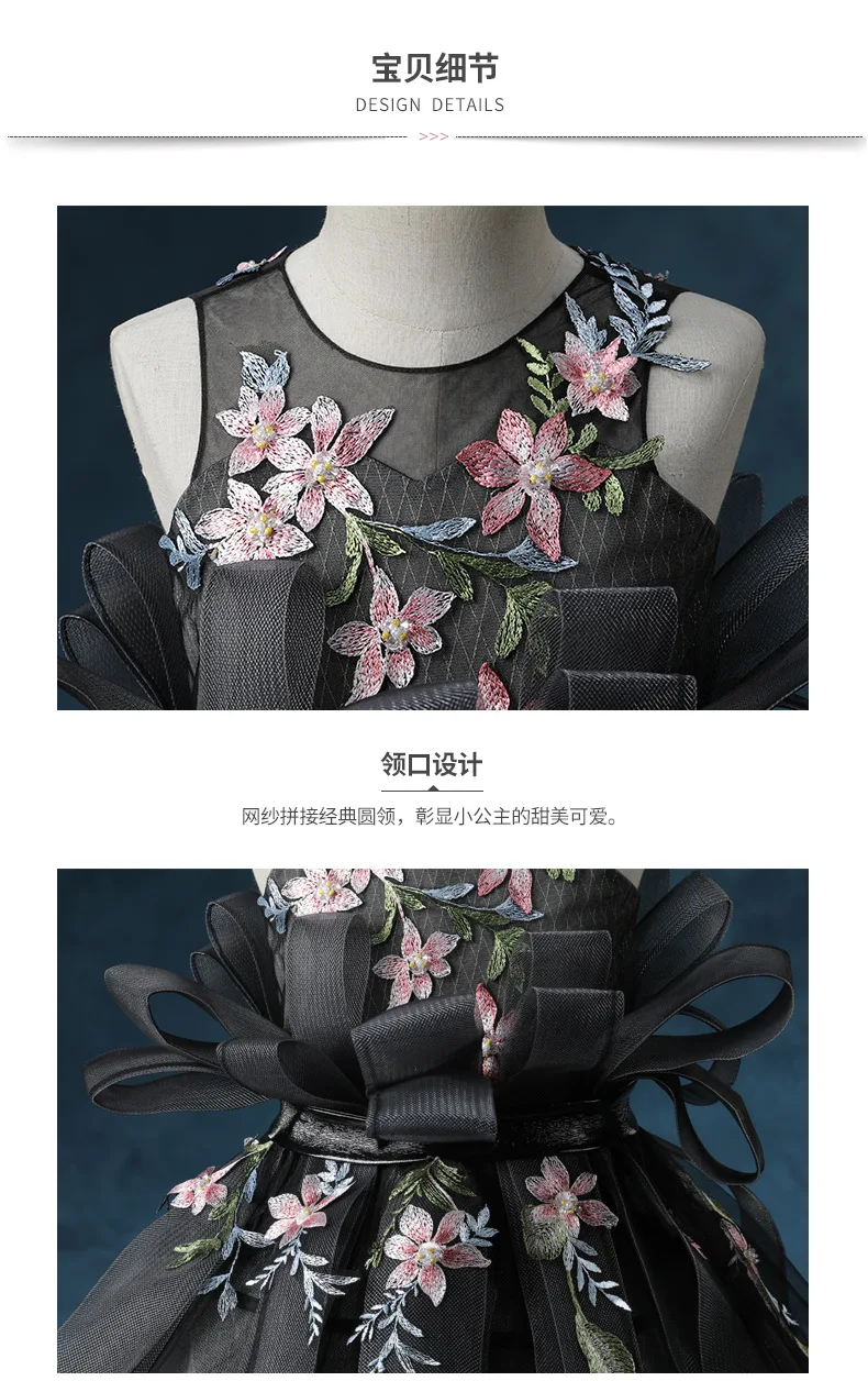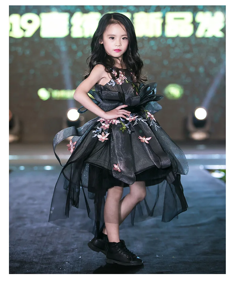 Платье для девочек; черное детское бальное платье для подиума; платье для выступлений; детское платье для свадебной вечеринки; праздничное платье; костюм; платья