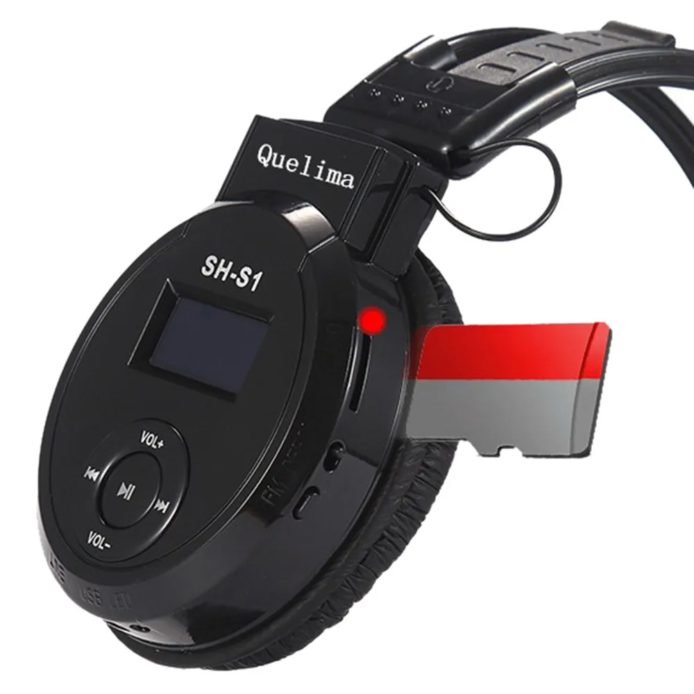 Quelima SH - S1 Универсальный складной спортивный Беспроводная гарнитура светодиодный fm-радио наушники Поддержка tf-карты