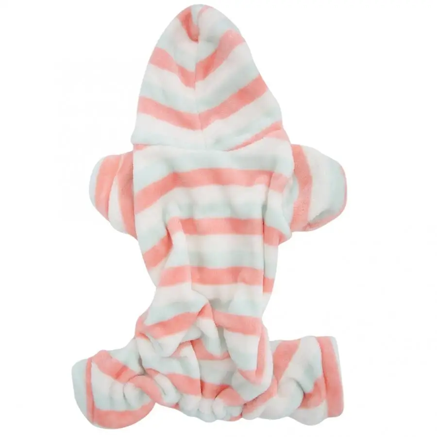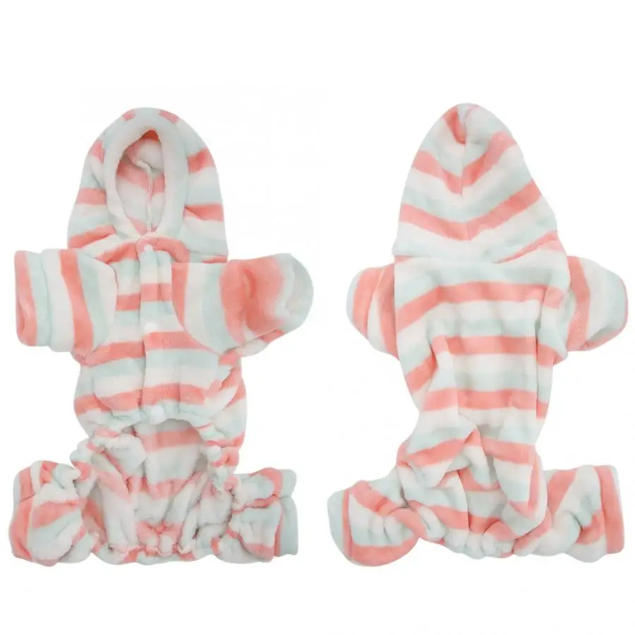 Коралловый флисовый светильник в красную и зеленую полоску; Сезон осень-зима; Четыре фута; Толстовки с капюшоном для домашних животных; Теплая Пижама; Одежда для собак и кошек