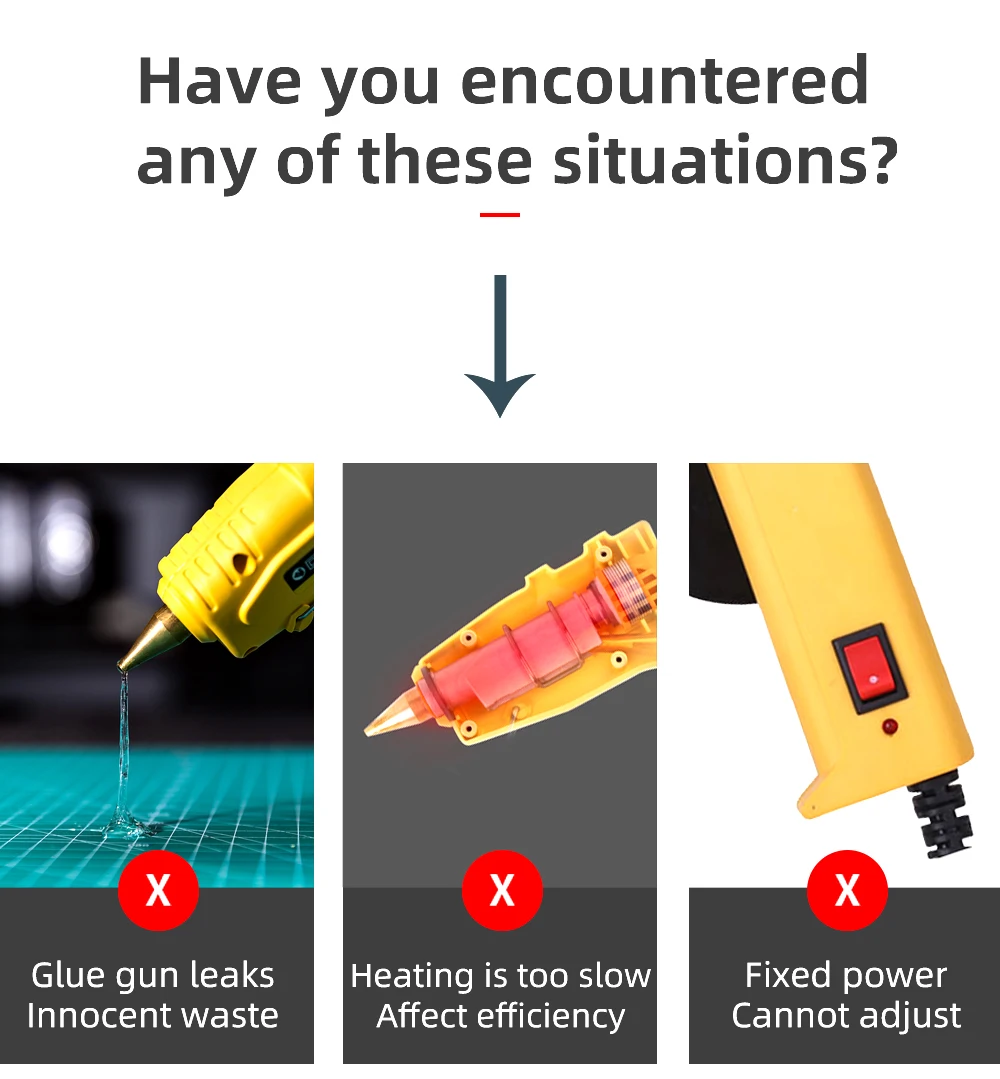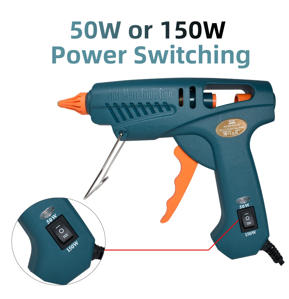 [Двойной источник питания 50 Вт/выкл./150 Вт]Двойной выключатель питания, может свободно переключаться 50 Вт/150 Вт в соответствии с вашими технологическими потребностями. Клеевой пистолет может широко использоваться в домах, офисах и на заводах. Это идеальный выбор для любителей творчества и промышленных работников. Ваш талант самостоятельного изготовления изделий ручной работы и исправьте все, что хотите.