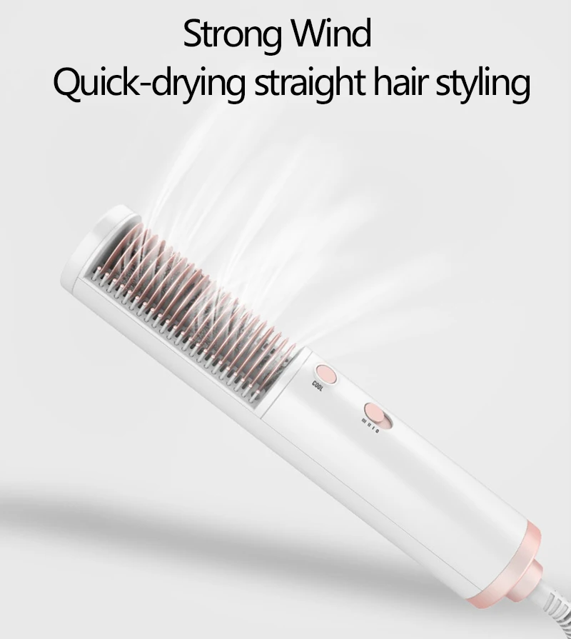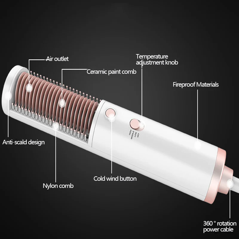 Горячая и холодная передача может быть свободно переключена. Три шестерни горячего воздуха подходят для ваших потребностей при различных температурах. Это первый выбор для мам, друзей и путешествий на дому. Название: расческа для горячего и холодного воздуха Цвет: белый Напряжение/мощность: 110/220 в, номинальная мощность 800 Вт Нагревательный Материал: нагревательный провод Длина шнура питания: 2 м, может вращаться на 360 градусов