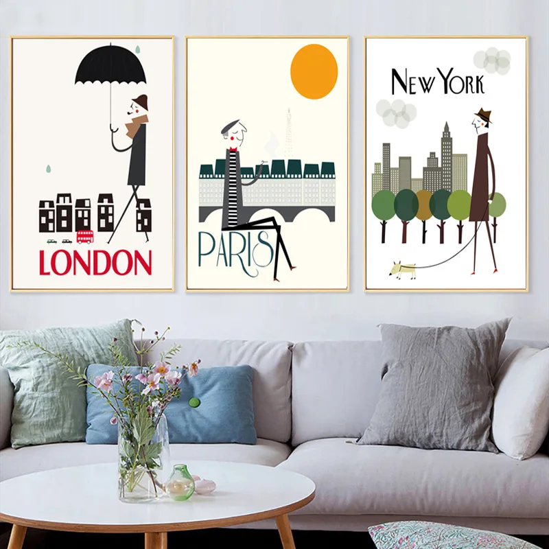Hd Печать холст искусство живопись Нью-Йорк Париж Лондон Винтаж путешествия города пейзаж постеры настенное Искусство украшение картины