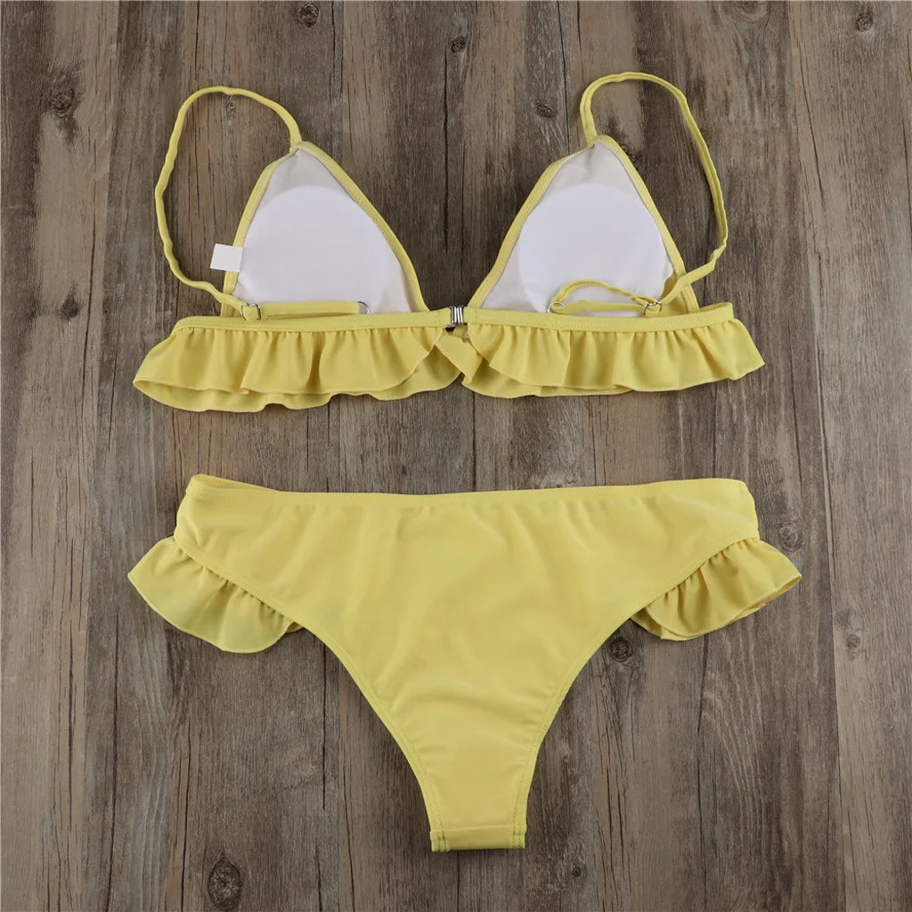 Женский комплект с бюстгальтером пуш-ап, купальный костюм с оборками и низкой талией