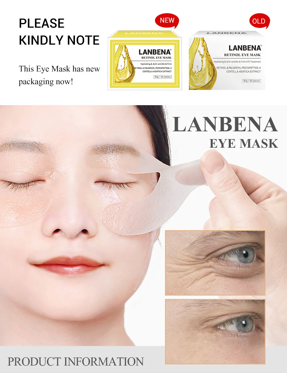 Посылка включает в себя: 1 бутылка 50 шт гелевые маски для глаз