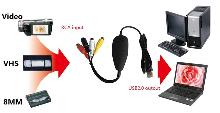 USB2.0 Video Audio Capture converter, RCA to USB2.0 converter capture old analog video audio from VHS, Hi8, Camcorder to Windows