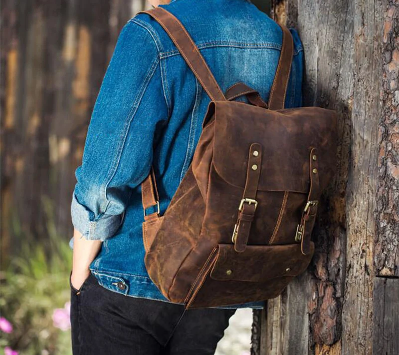 Мужской Дорожный рюкзак из кожи с натуральным лицевым покрытием, повседневный кожаный рюкзак для ноутбука, винтажный школьный рюкзак