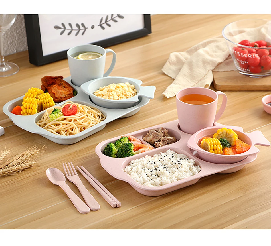 ONEUP Wheat Straw Children's Dinner Plate Bowl Cup Set Lunch Dinner Plate Divider Dinner Plate Cartoon Baby Anti-fall Tableware