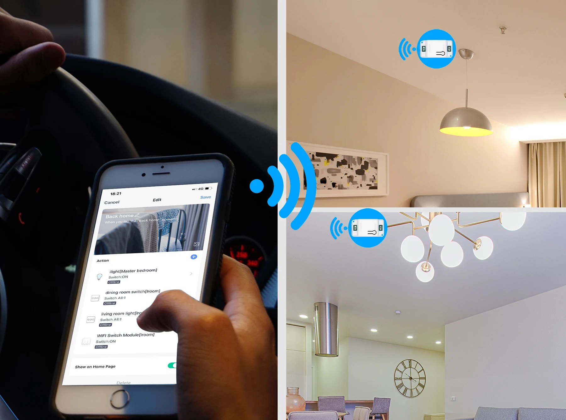 433 МГц Радиочастотное управление: даже если нет сигнала Wi-Fi, вы все еще можете управлять огнями в помещении с радиочастотными передатчиками. Дистанция радиочастотного управления: ≤ 30 м (видимая); ≤ 15 м (невидимая) Пульт дистанционного управления: Управляйте огнями в любом месте и в любое время с помощью бесплатного приложения «Tuya Smart или Smart Life», пока ваш смартфон имеет сигнал Wi-Fi или 4G. Не поддерживает 5G. Голосовое управление: Идеально подходит для Amazon Alexa и Google Home. Просто дайте голосовую команду Alexa или Google Home, чтобы включить/выключить свет, когда вы находитесь в пути. Настройка времени: Настройка графиков для включения/выключения Смарт-переключателя в соответствии с привычкой к жизни. С этого момента, вы никогда не будете просыпаться утром, раздражая будильник и вернуться в темный дом вечером. И это может помочь вам уменьшить оплату электроэнергии. Функция совместного использования: обмен устройствами с вашим членом семьи для устранения дополнительных шагов настройки.
