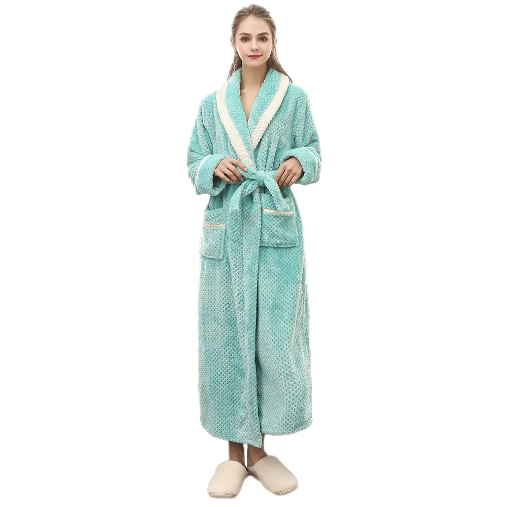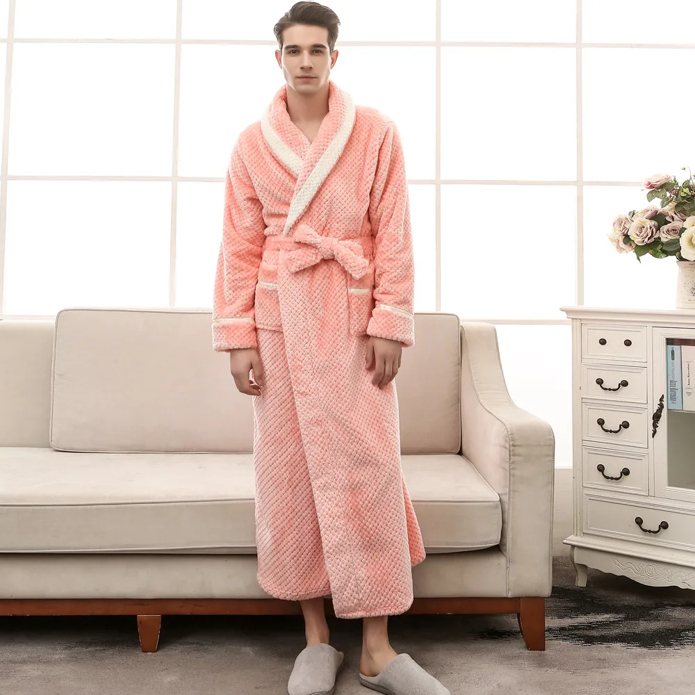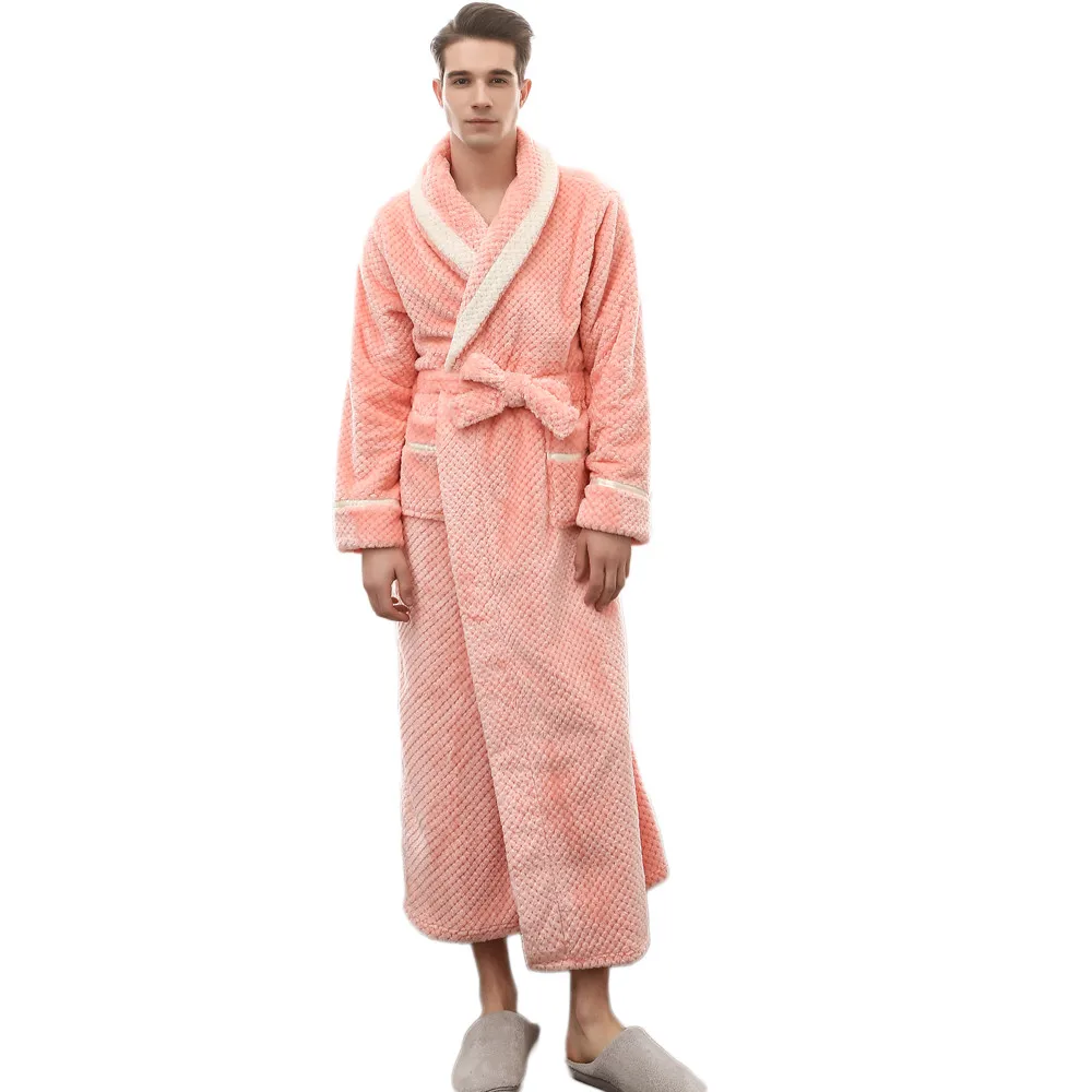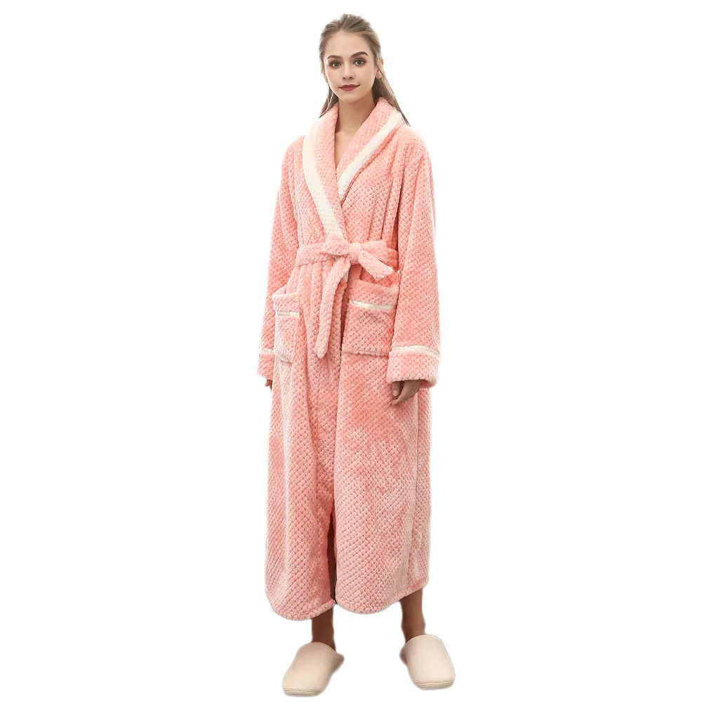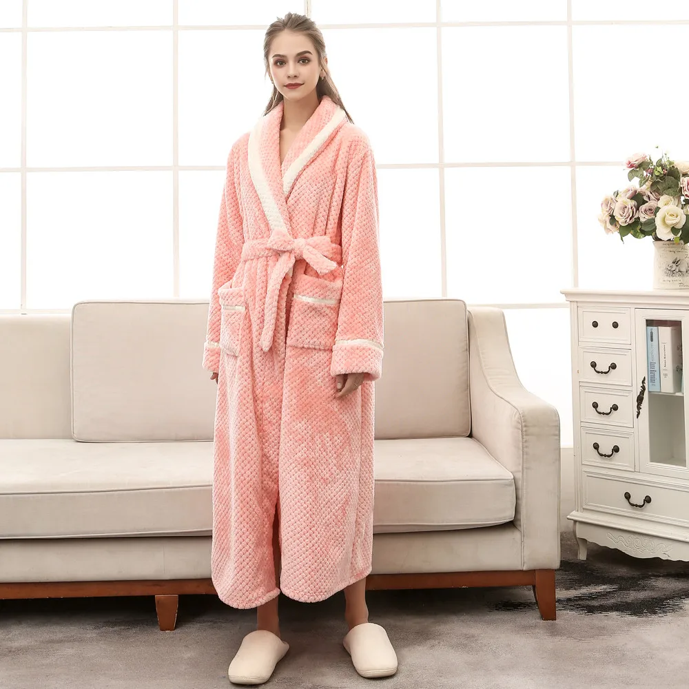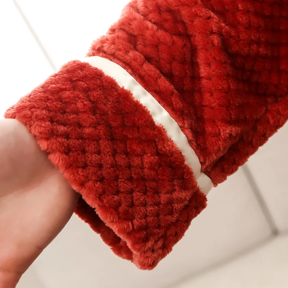 Мода 2020 унисекс зимний удлиненный коралловый плюшевый халат с шалью, халат с длинными рукавами, пальто для дам, без подкладки, одежда для сна с принтом